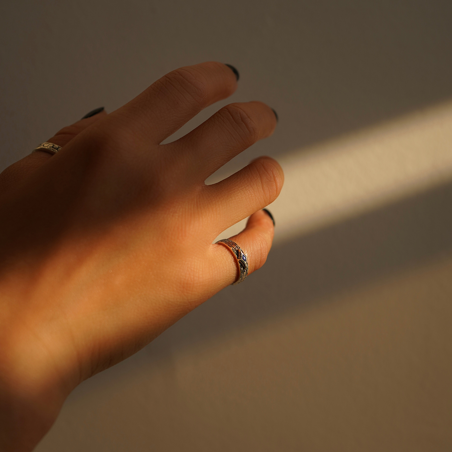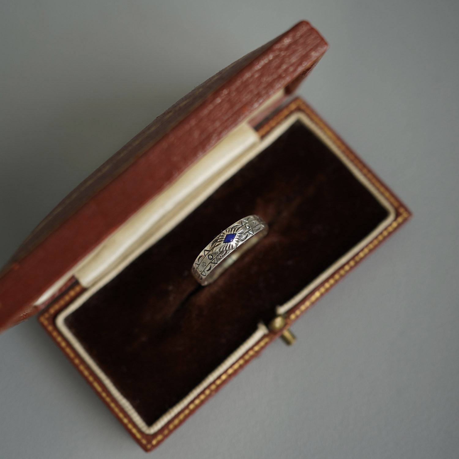 睡莲生生世世 925纯银戒指印第安纹饰青金石天然宝石阿美咔叽尾戒