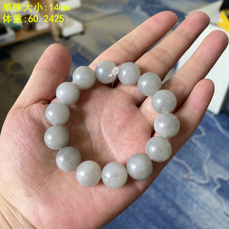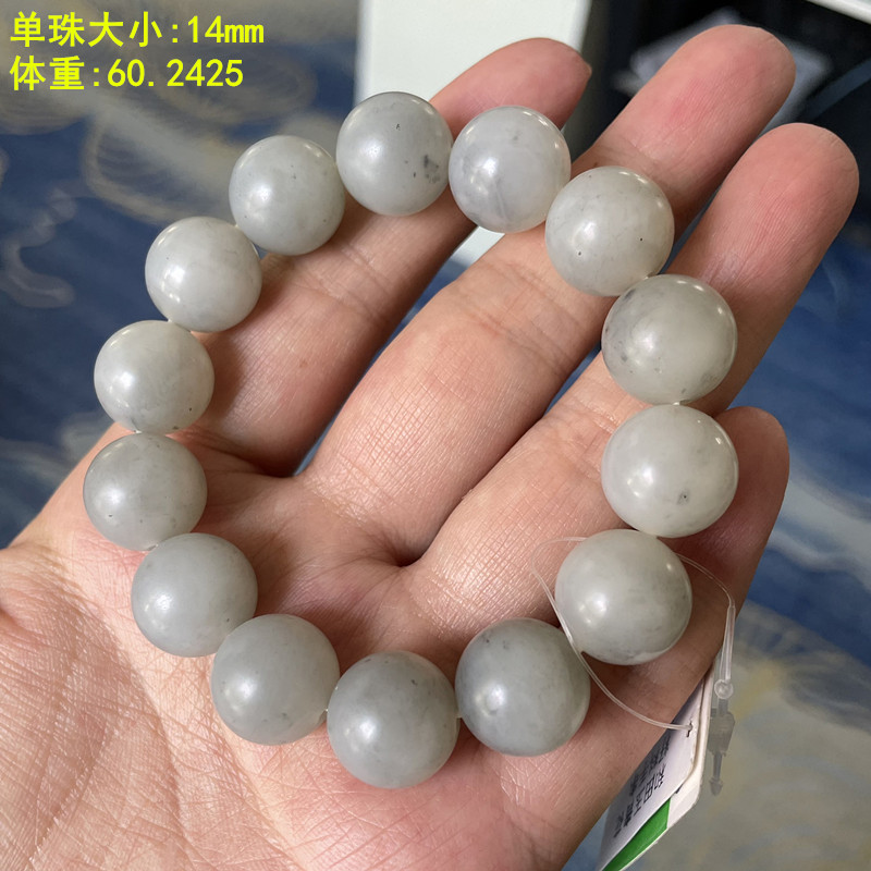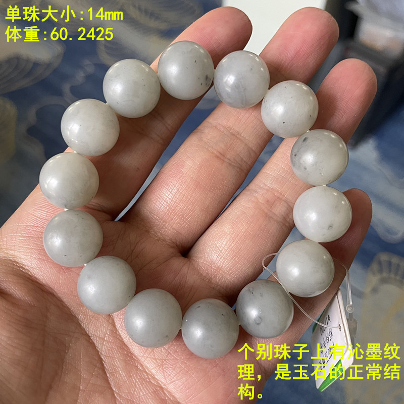 N14mm游离态石墨青花籽料圆珠手串 和田玉朕®开仓