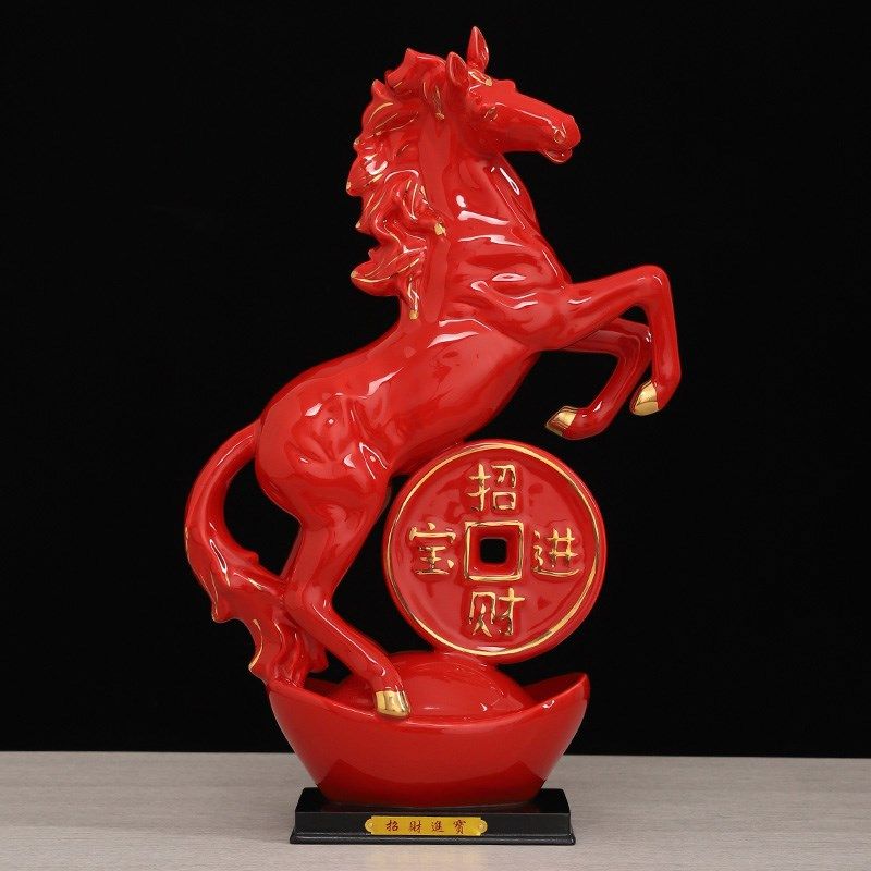 陶瓷马摆件黄色马到成功白瓷器招财马工艺品客厅办公室开业礼品