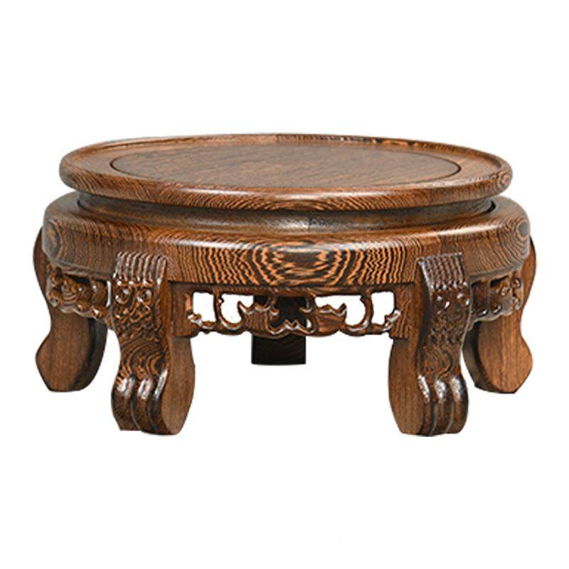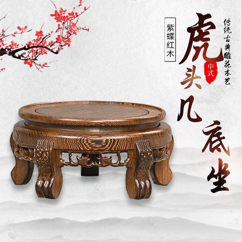 鸡翅圆木虎盆脚几底座形花瓶景鱼缸花底座奇石盆茶壶佛像鸡翅木虎