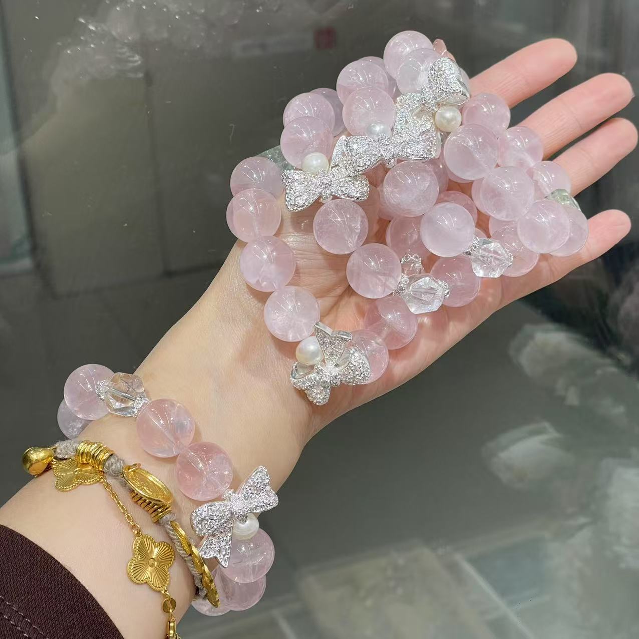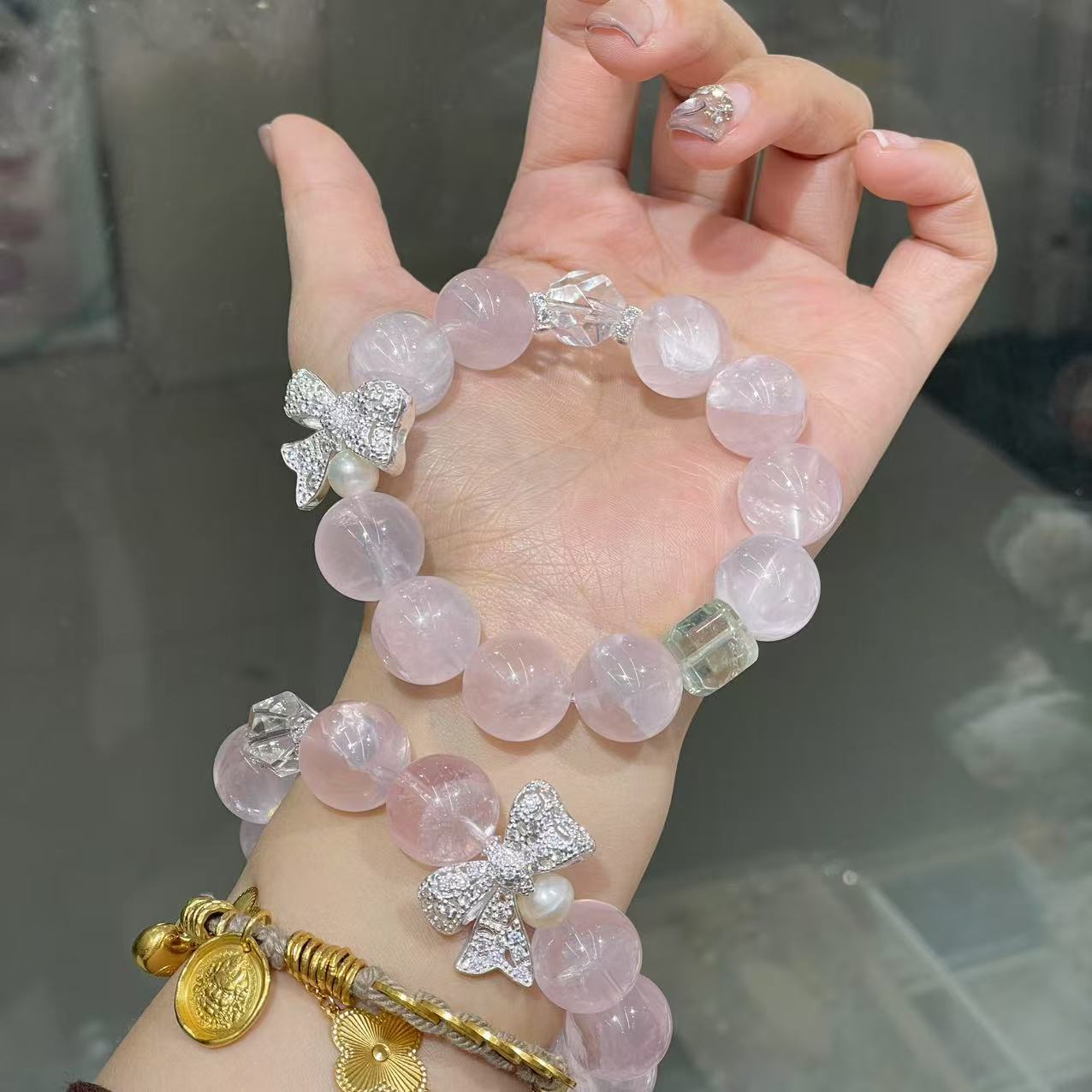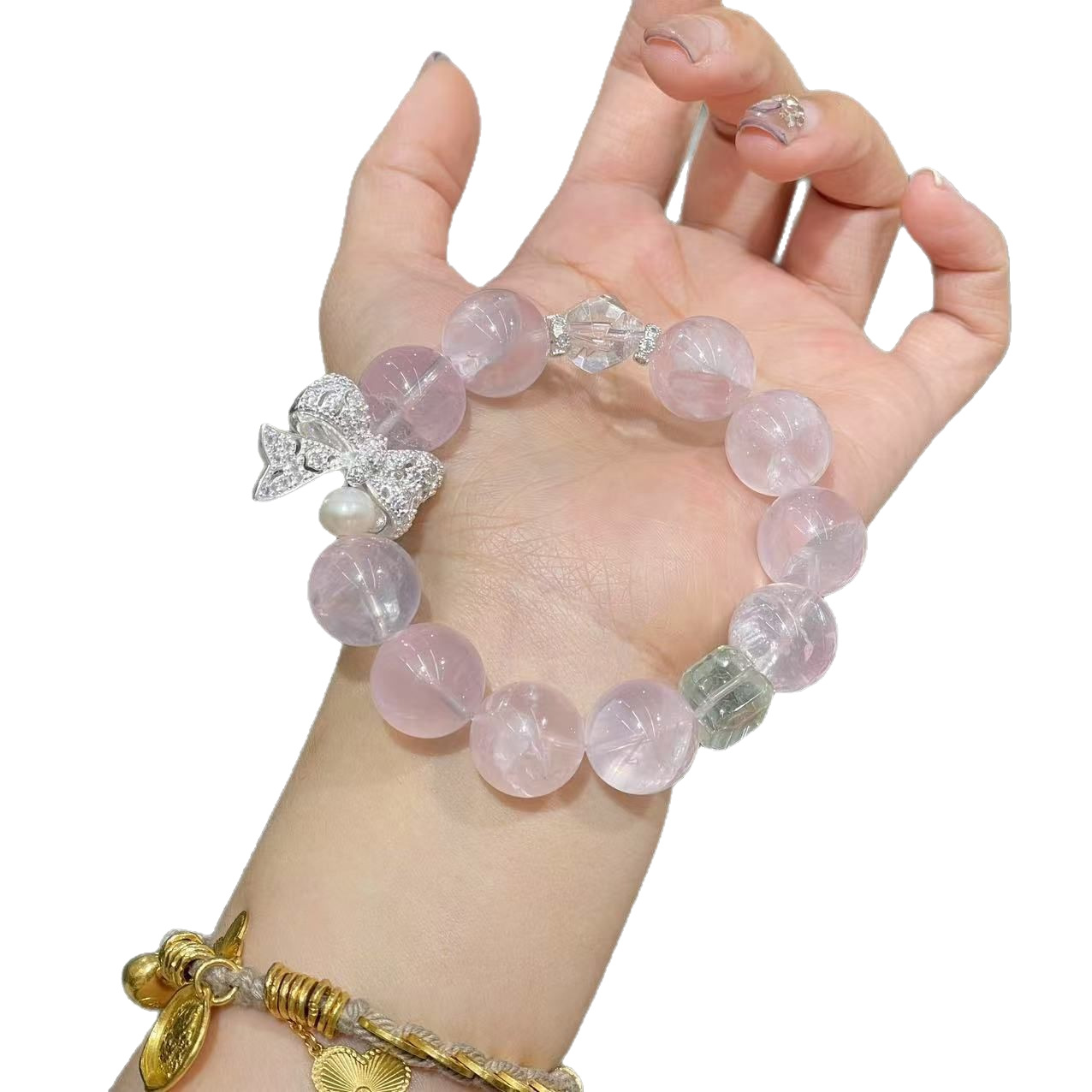 批发天然水晶粉水晶原创设计款手链白水晶天使之翼饰品高级感手串