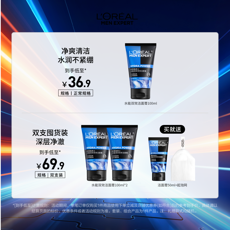 当前位置:首页>商品详情>【百亿补贴】欧莱雅男士洗面奶水能润泽双效洁面乳补水保湿清爽