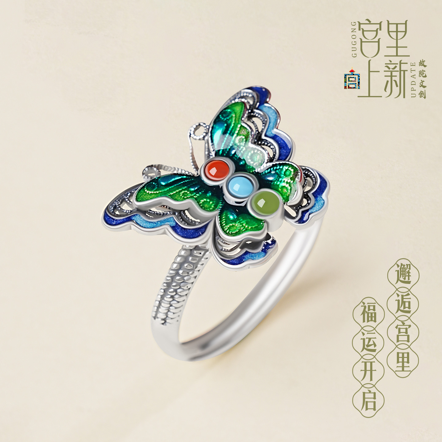 宫里上新蝴蝶戒指女款纯银珐琅开口指环小众高级感生日礼物送妈妈