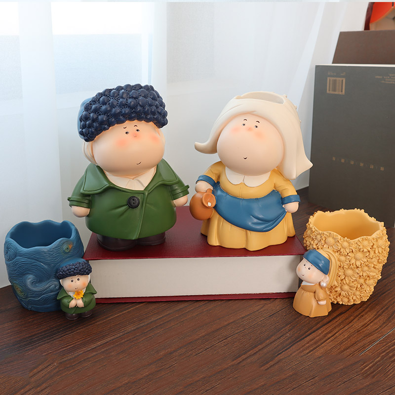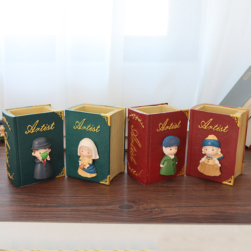 艺术家梵高笔筒家居桌面装饰工艺品欧式轻奢高档摆件创意实用礼物