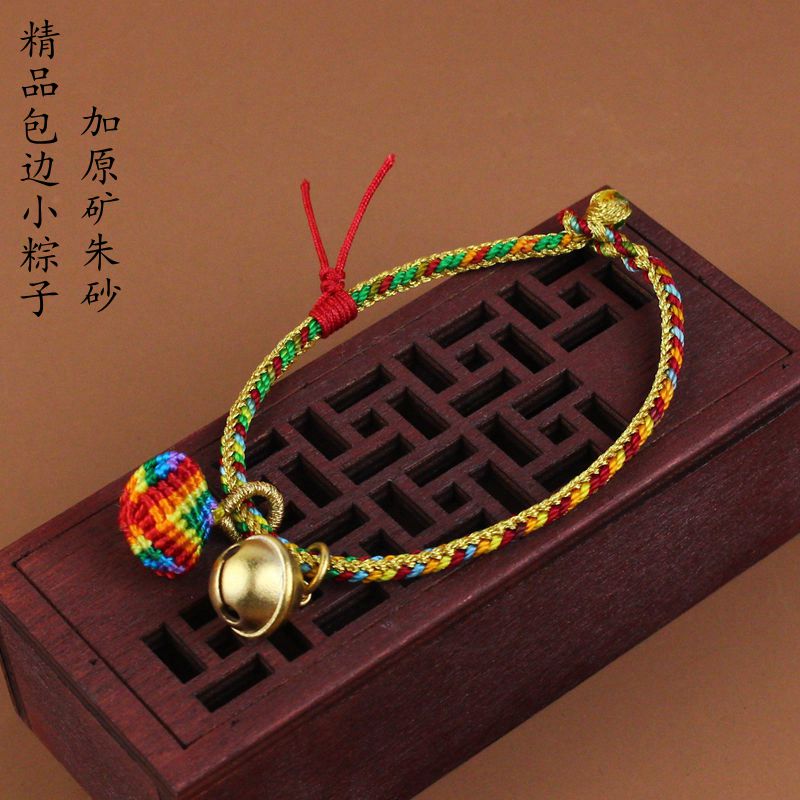 端午节手工精编朱砂粽子手链婴儿童宝宝成人五彩绳铃铛手绳情侣
