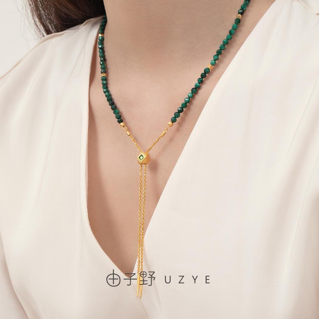 由子野孔雀宝石爆款2025新款小众透辉石项链装饰品女配饰衣服百搭