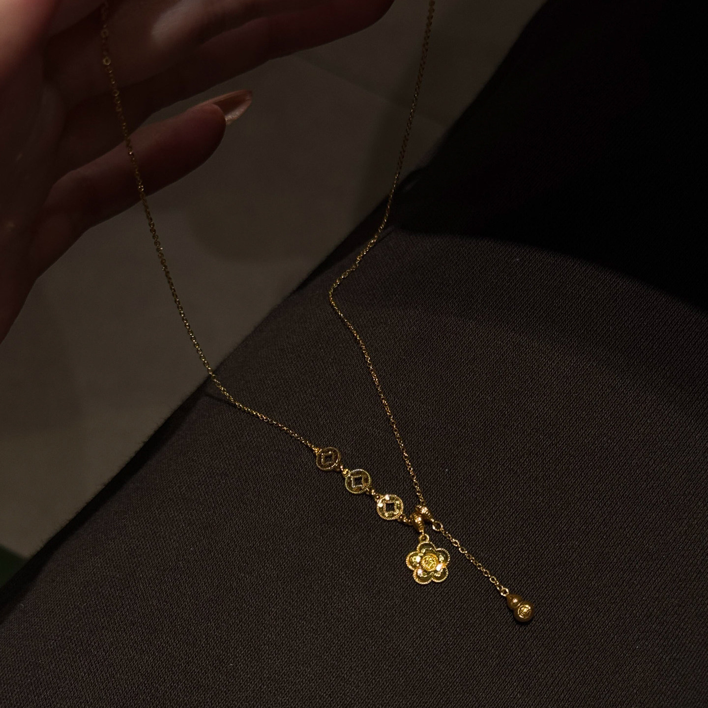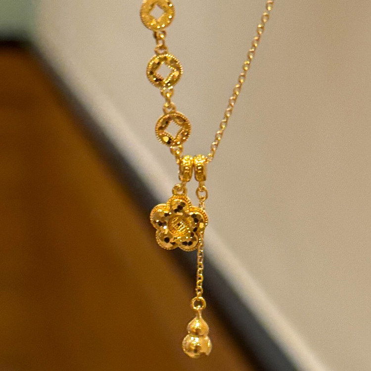 S925纯银新中式有钱花y字项链女款高级感轻奢小众葫芦吊坠毛衣链