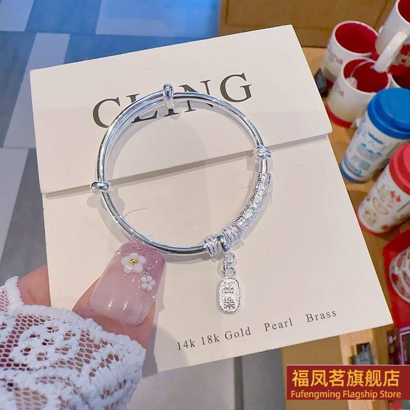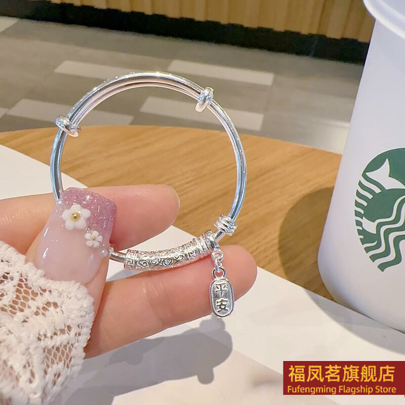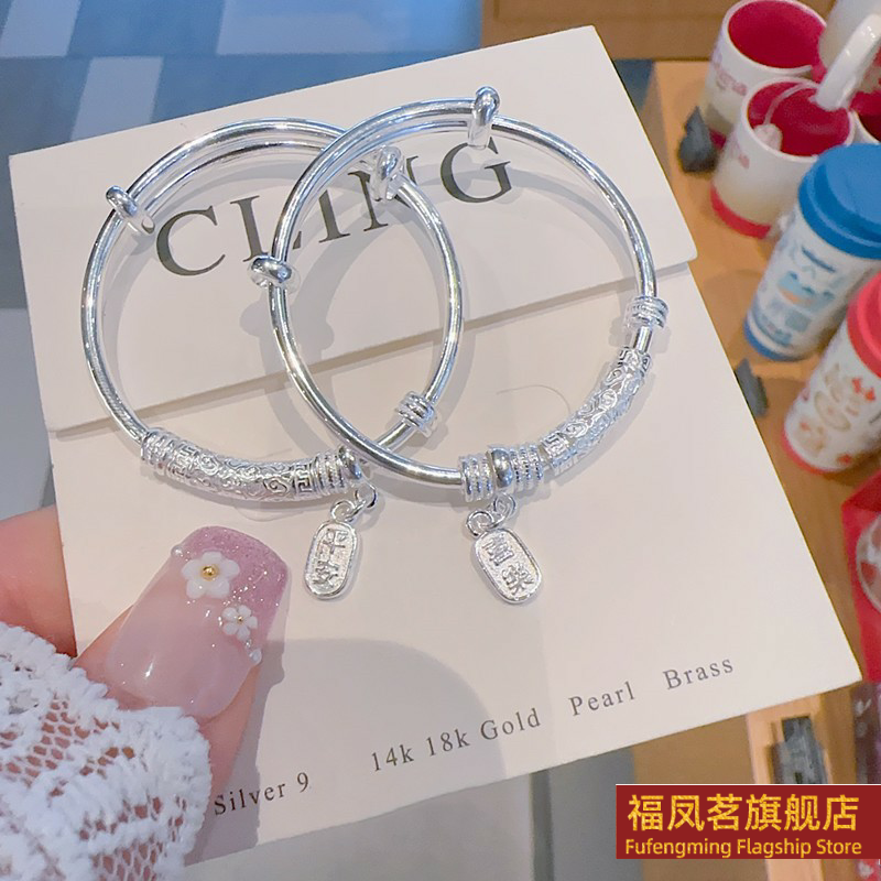 正生新款祥云平安喜乐纯银手镯足银9999男女宝宝婴儿满月周岁礼物