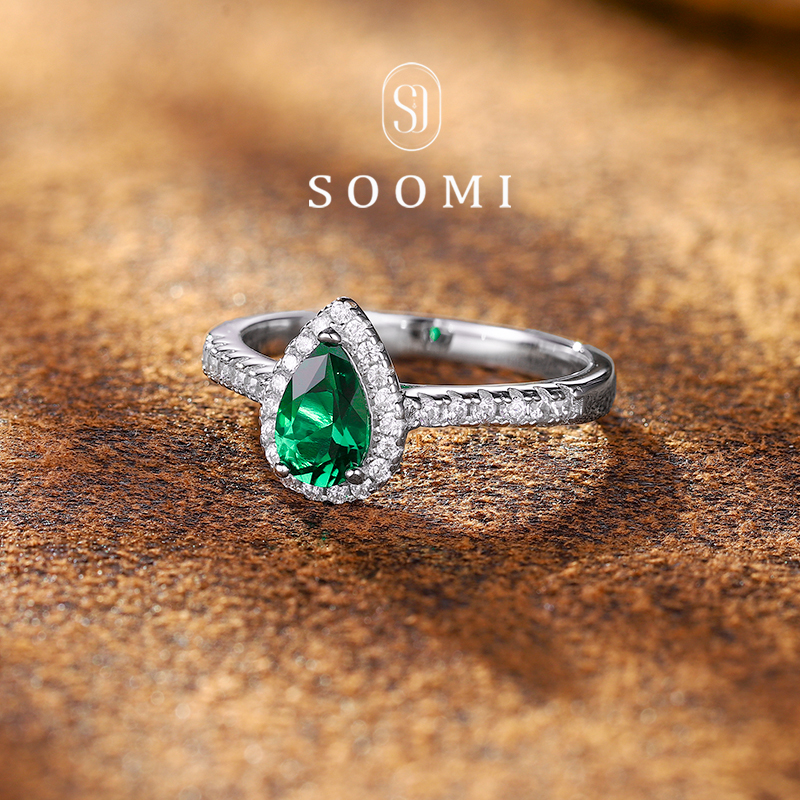 【新品85折 红火】祖母绿戒指1ct培育彩宝水滴女戒赞比亚沃顿色