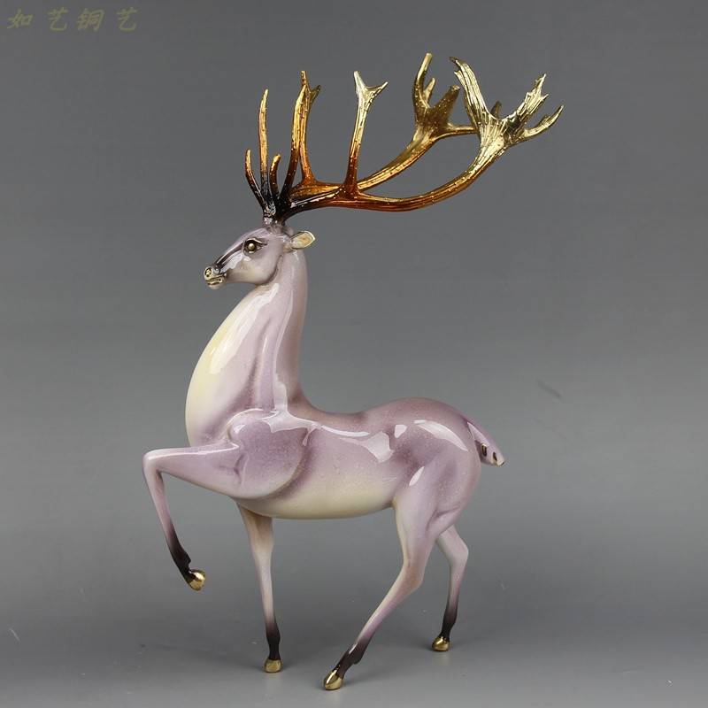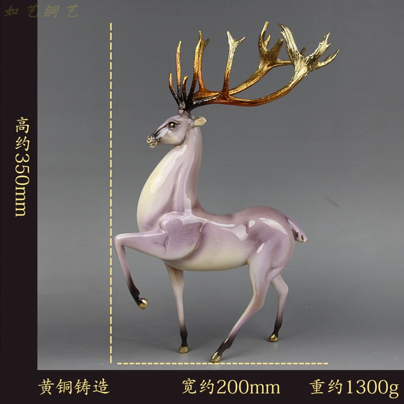 铜鹿灵芝鹿摆件全铜轻奢对鹿家居装饰品玄关摆设创意铜摆件