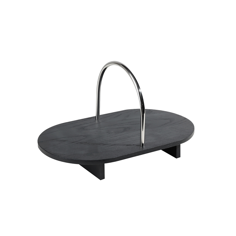 现代简约客厅玄关置物盘收纳摆件金属提手木质托盘样板间软装饰品