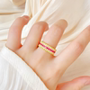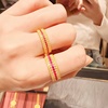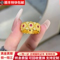 古法足金包银红宝石黄金戒指女镶钻焰心星芒素圈指环食指戒送女友