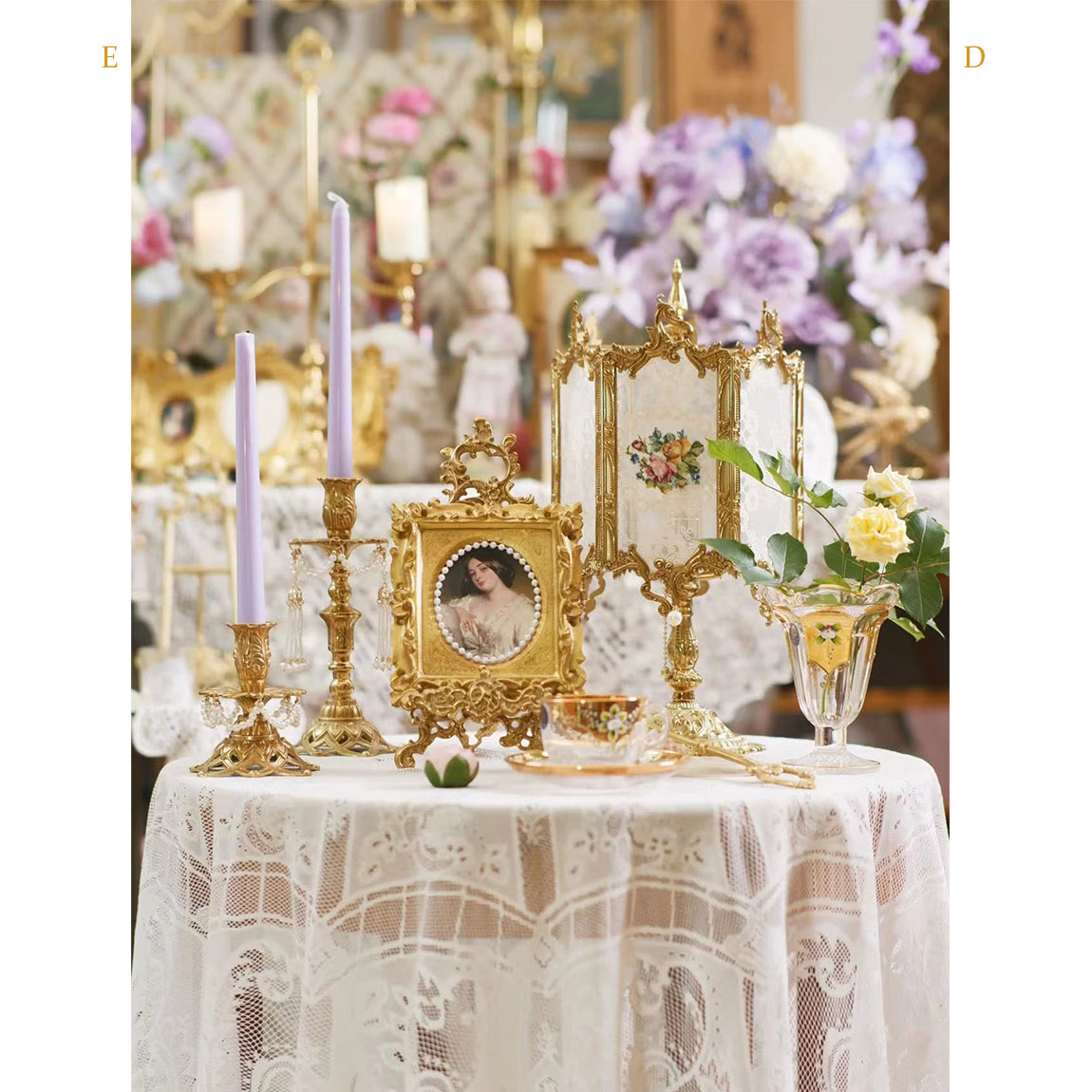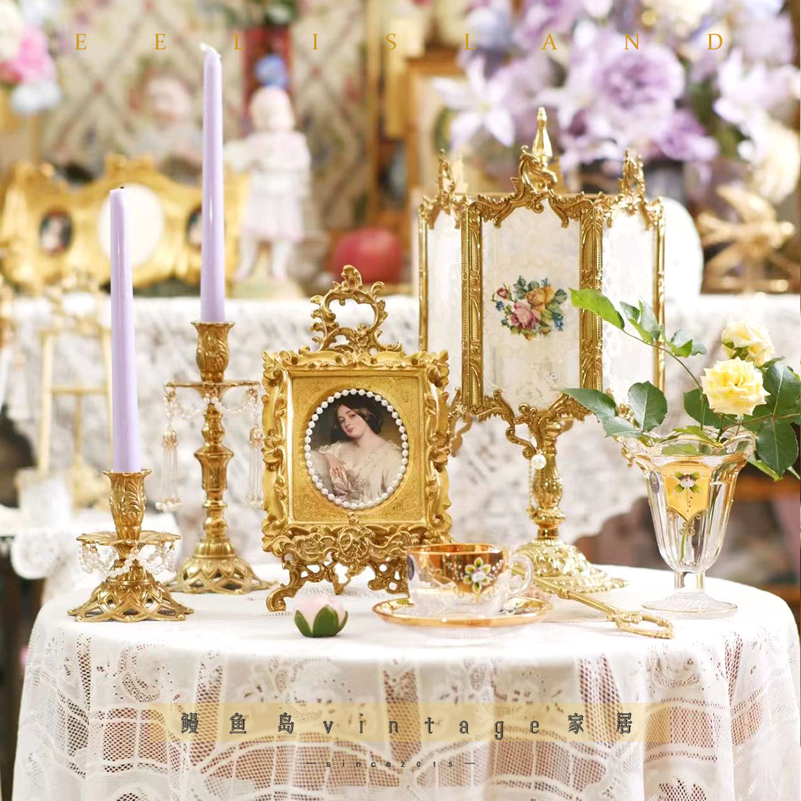 原创法式中古风黄铜盘架摆台装饰画花器烛台软装手工台灯氛围摆件