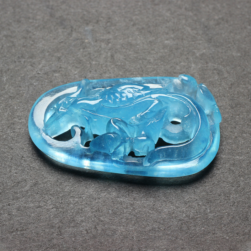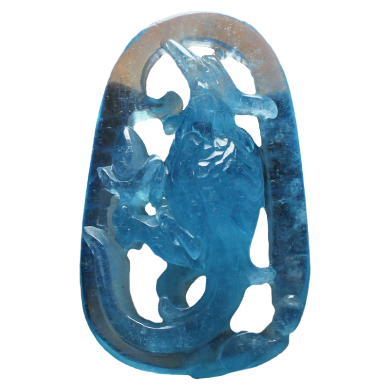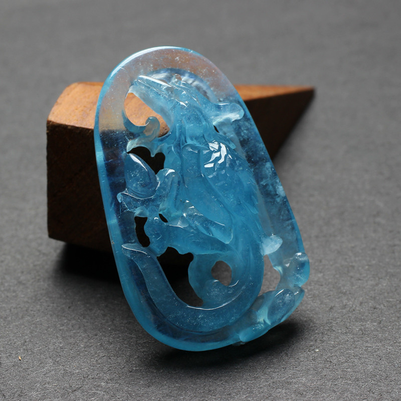海蓝宝喜鹊吊坠深蓝色宝石雕刻件喜上枝头饰品男女士水晶项链配饰