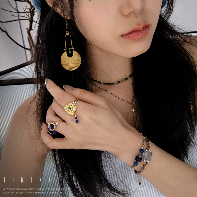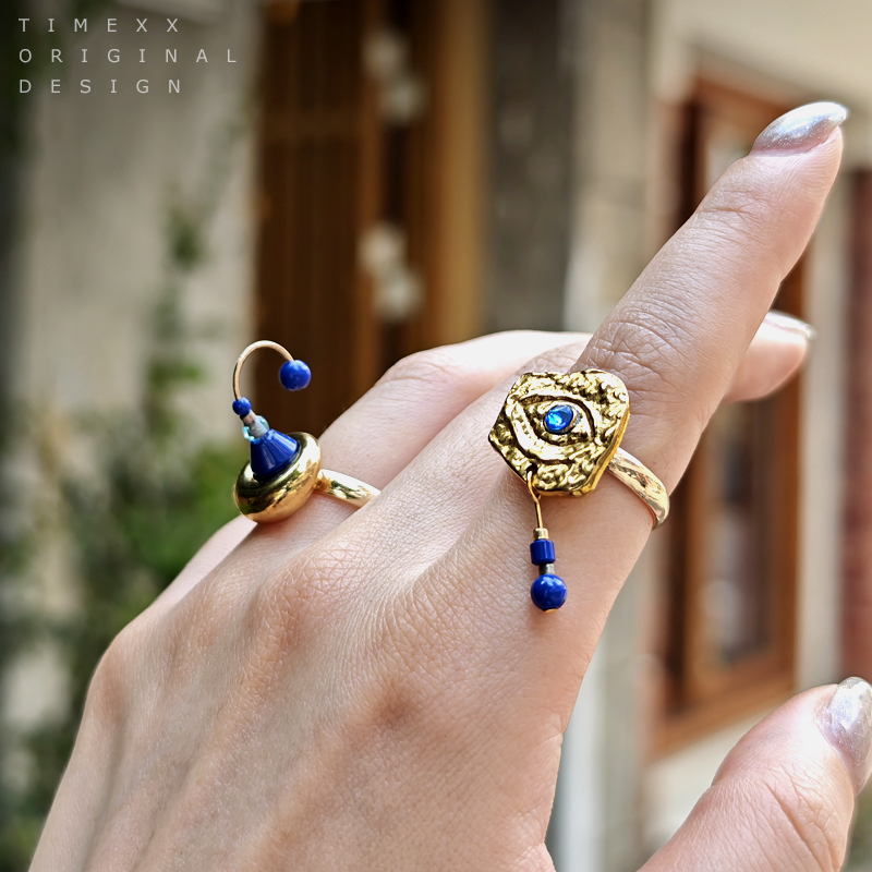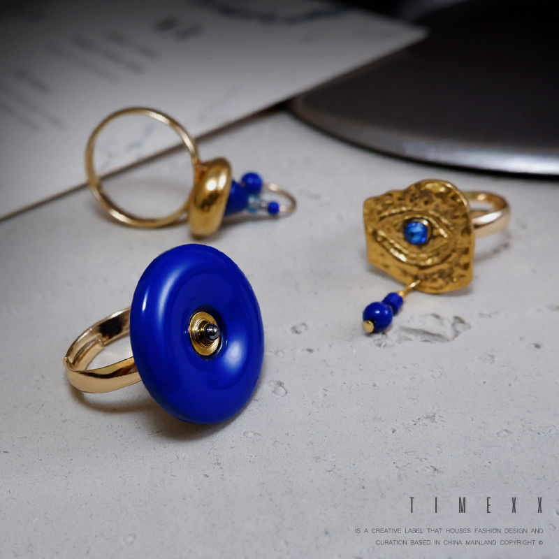TIMEXX原创设计 埃及未来感小众个性手作戒指 蓝色开口指环饰品潮