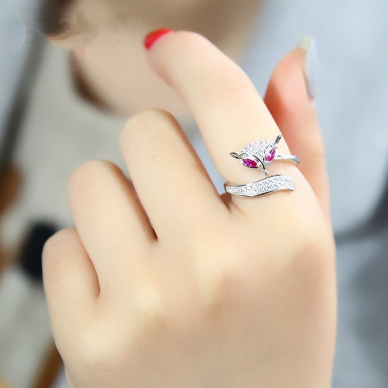 轻奢小众设计高级感个性时尚潮925纯银满钻狐狸女开口食指戒指环