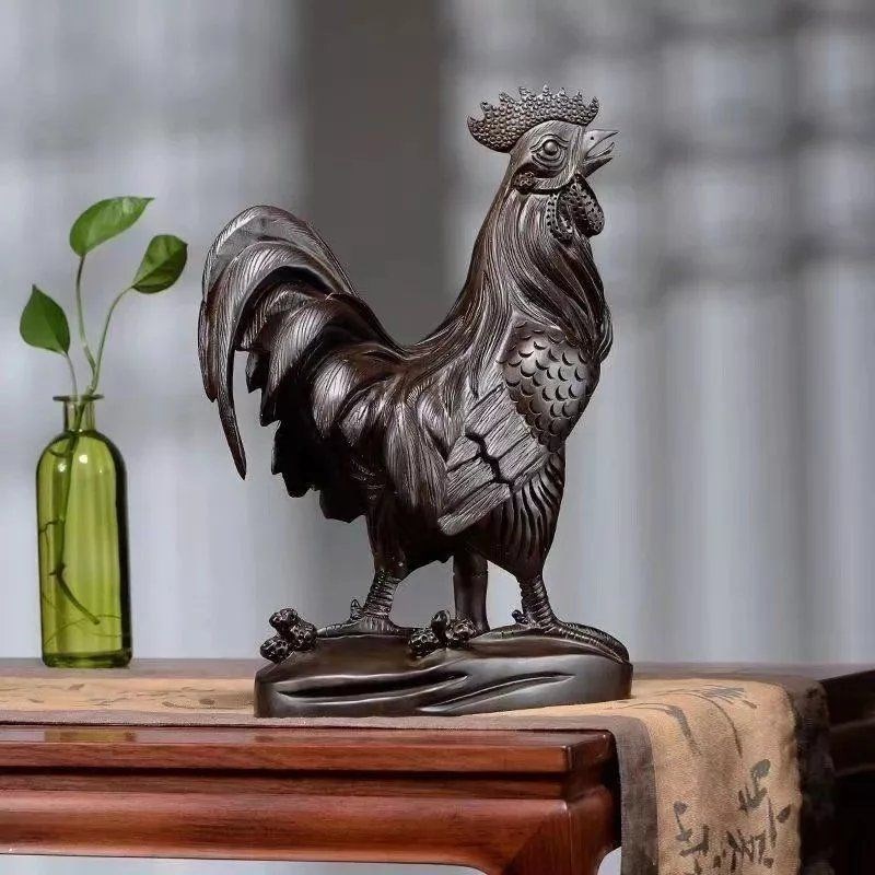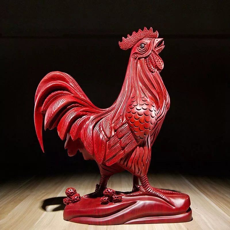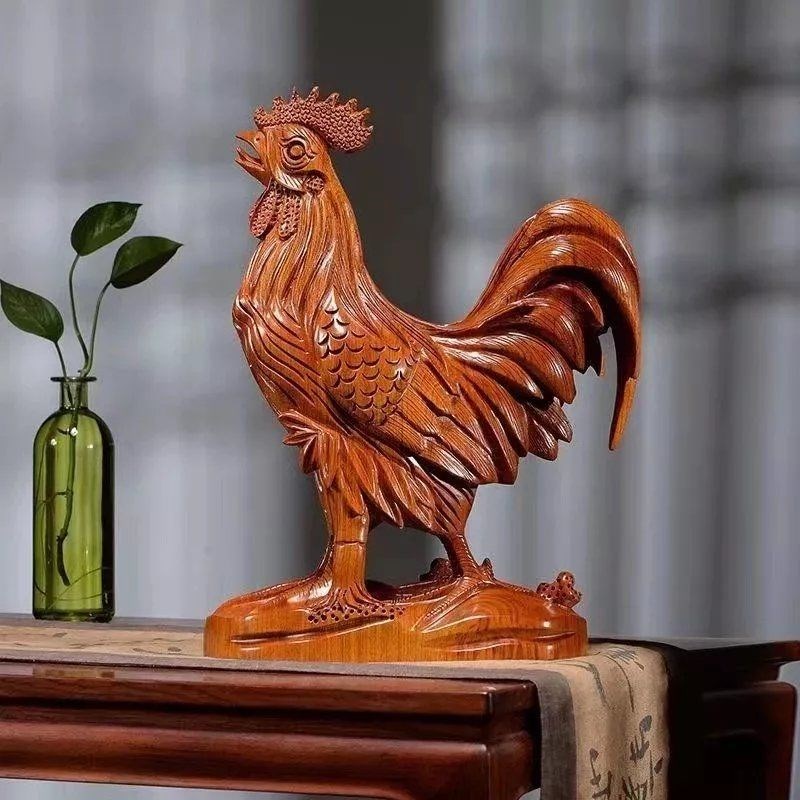 速发家梨实木雕鸡摆件根刻大十二生肖实木质雕雕花居装饰品工艺品