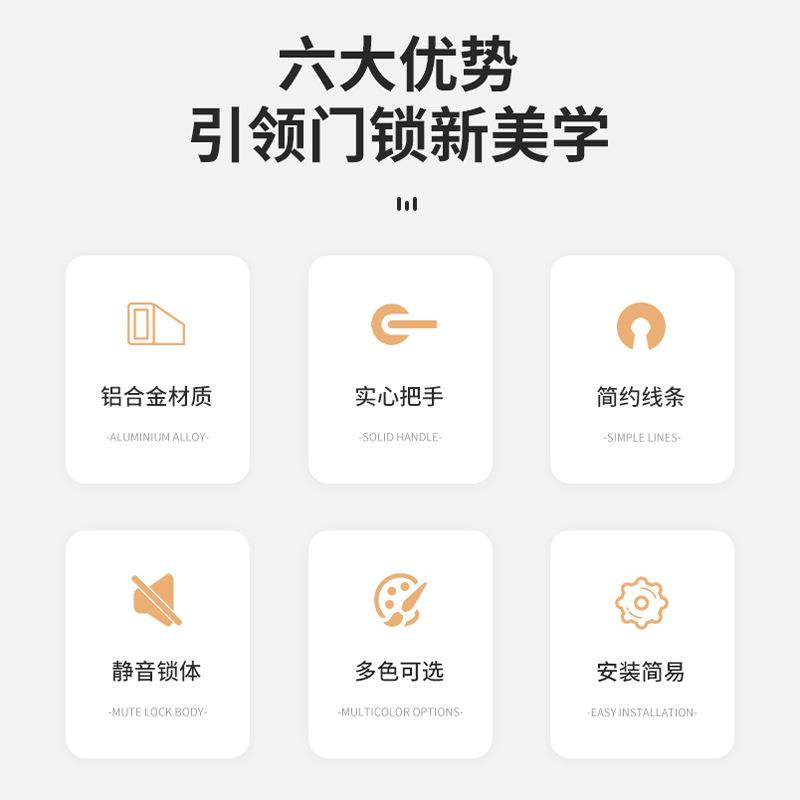 瑞璂多色门锁室内卧室房门锁房间门把手现代简约加厚静音锁