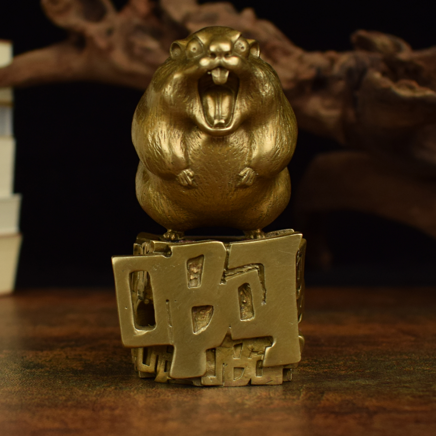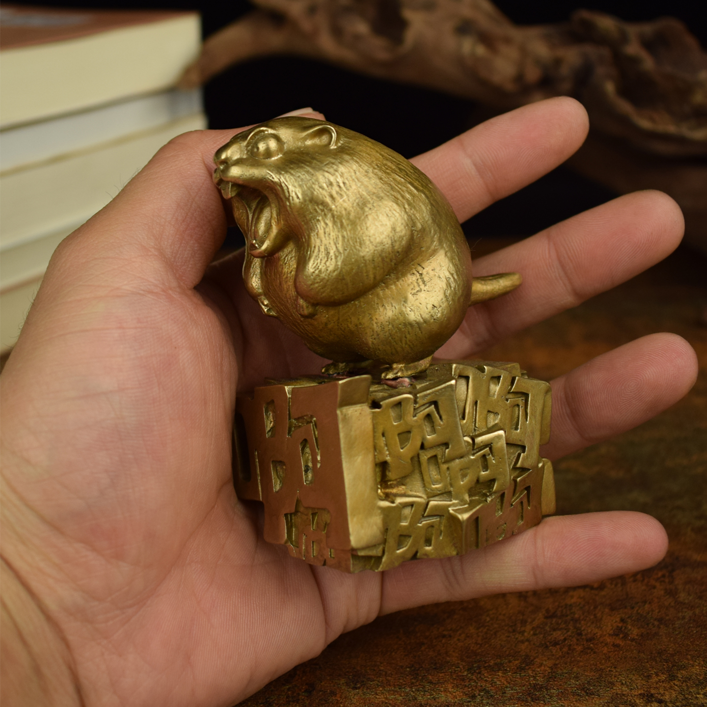 黄铜仿真可爱土拨鼠桌面创意小摆件工艺品生肖鼠办公室客厅摆件