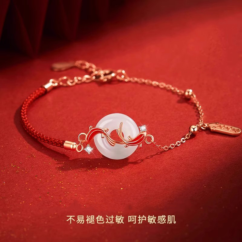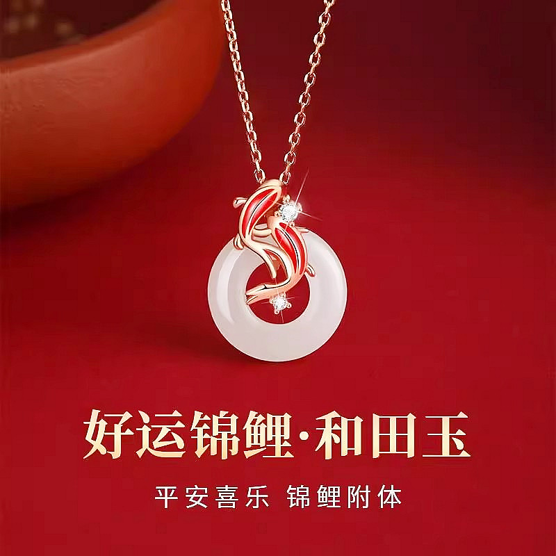 锦鲤和田玉平安扣项链女款2025新款高级感轻奢小众手链套装送女友