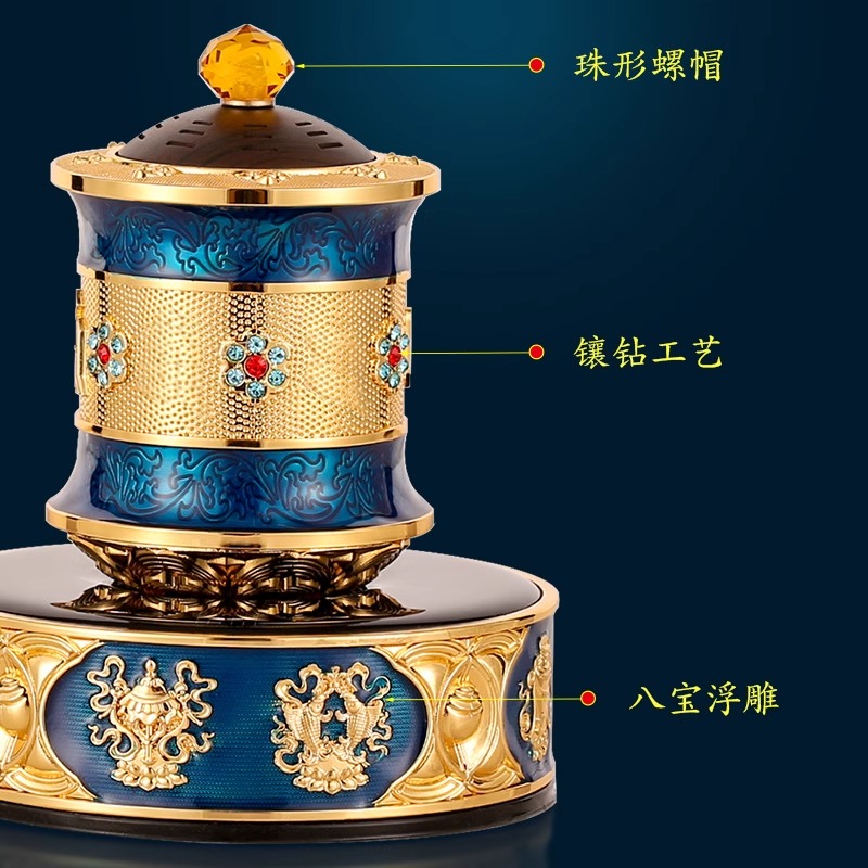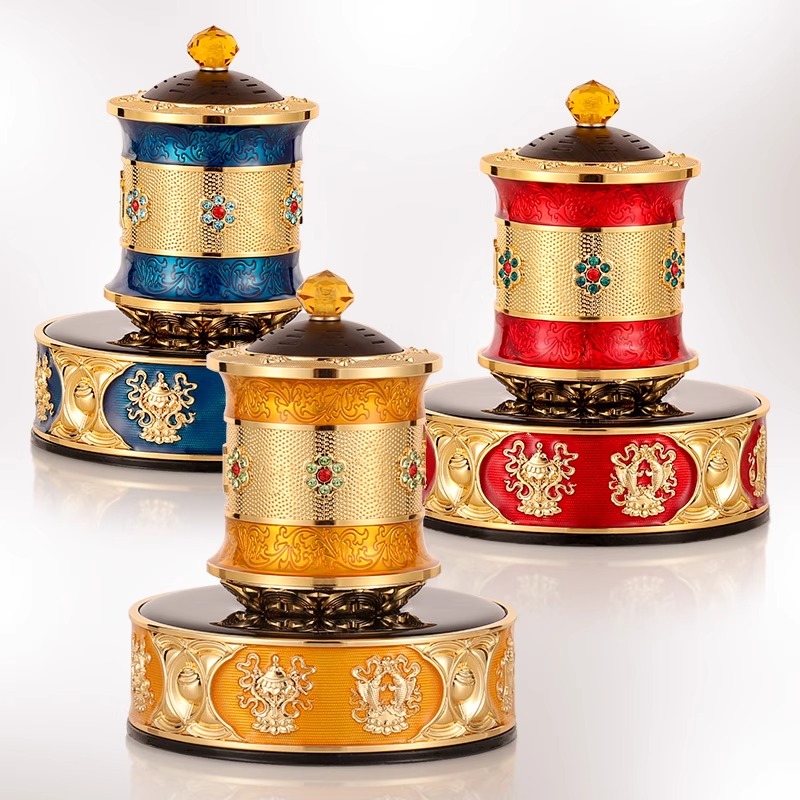 车载太阳能自动转轮汽车摆件中控仪表台平安合金筒可充电饰品
