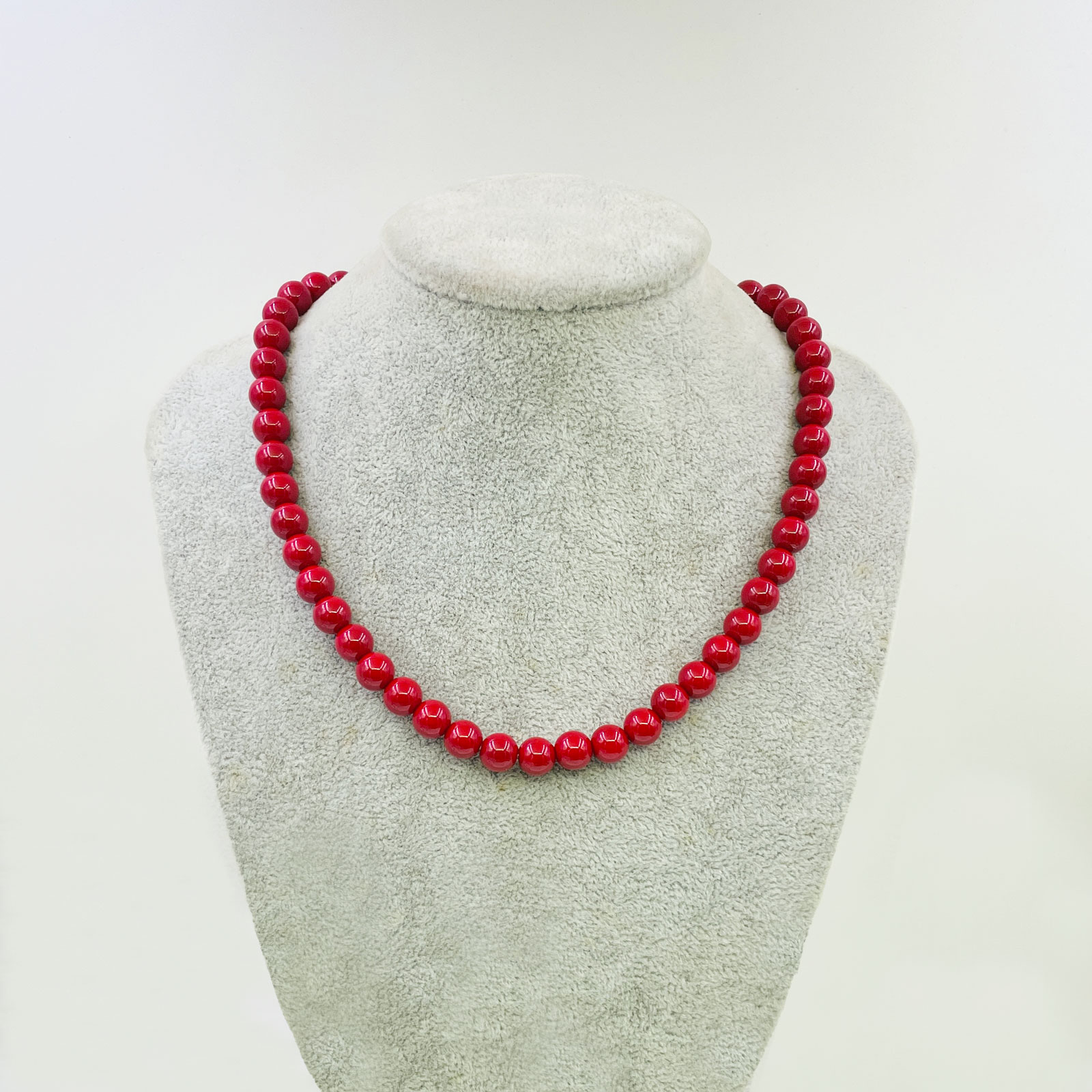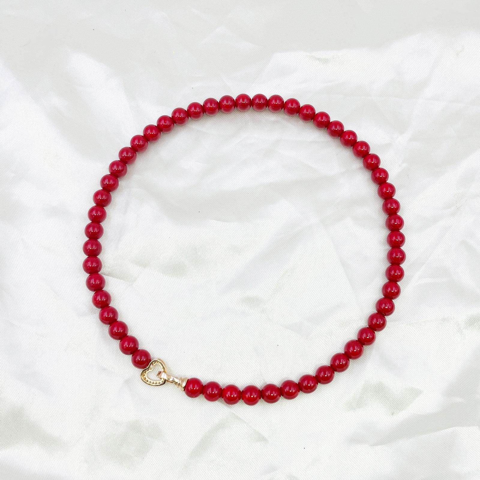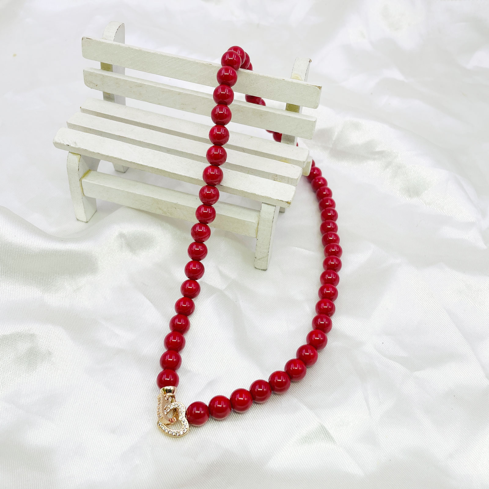 6 8 10 12mm圆珠大红色不掉皮施家珍珠项链 心形搭扣特色项饰女