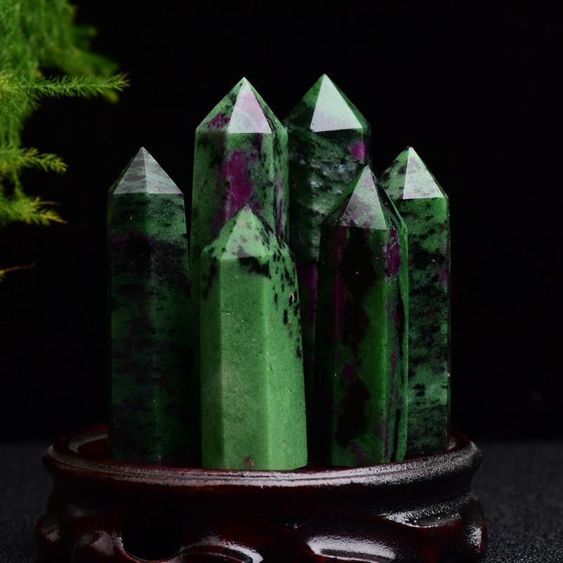 天然红绿宝单尖六棱水晶柱红绿宝原石打磨切割水晶柱摆件厂家定制