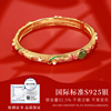 老银匠s925纯银手镯女款珐琅彩花丝镂空宫廷风新中式和田玉银镯子