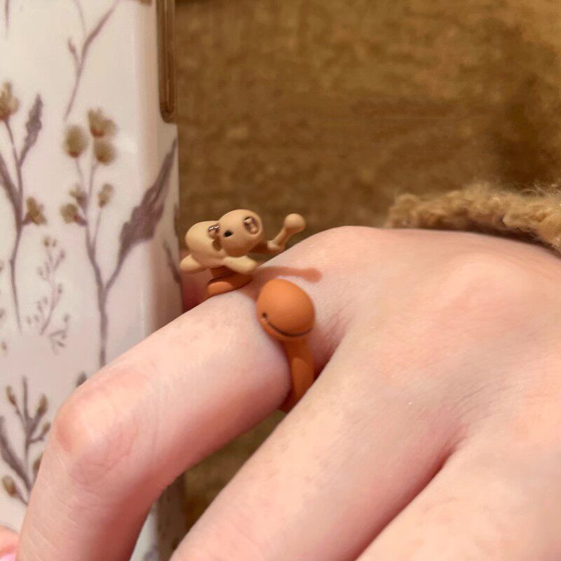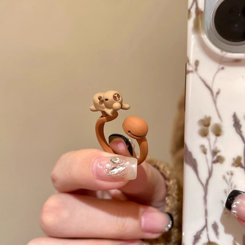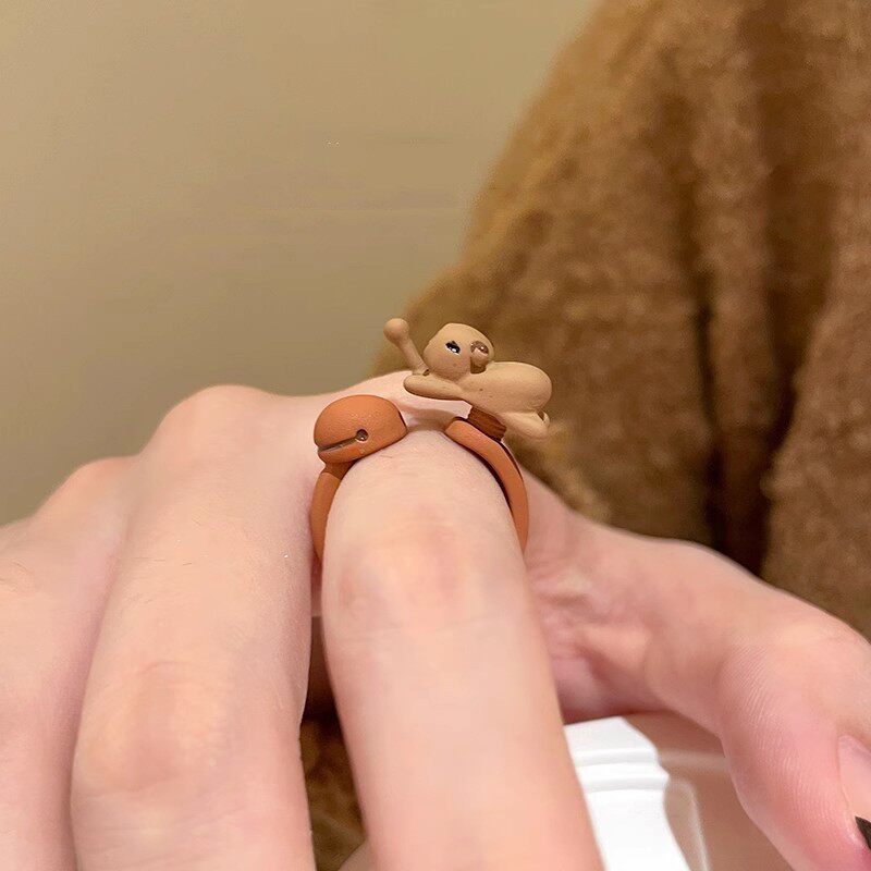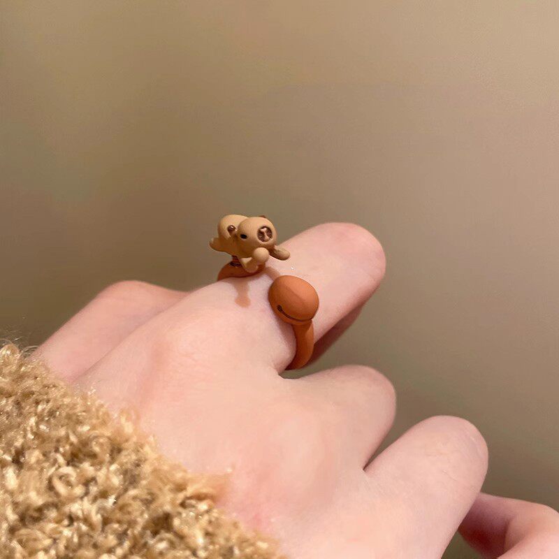 敲敲攒功德可爱小狗木鱼戒指男女个性创意打工人解压食指开口指环