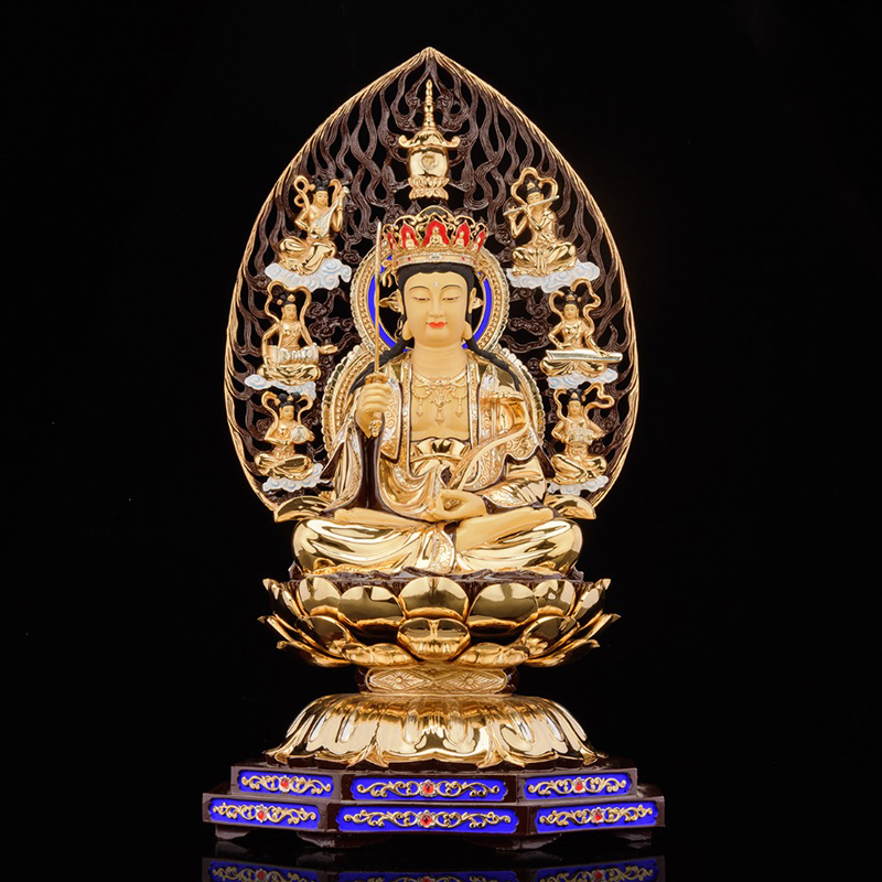 文殊菩萨像 普贤菩萨 佛堂华严三圣家用供奉佛像全铜台湾盛凡鎏金