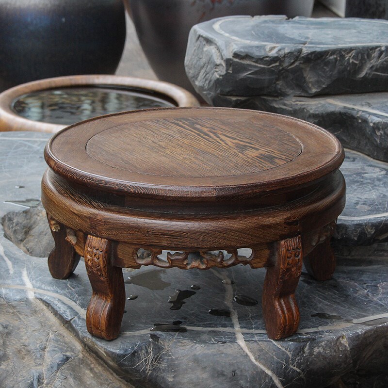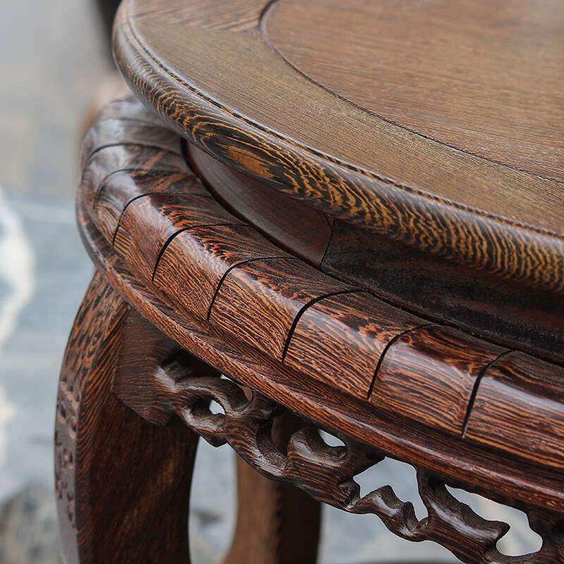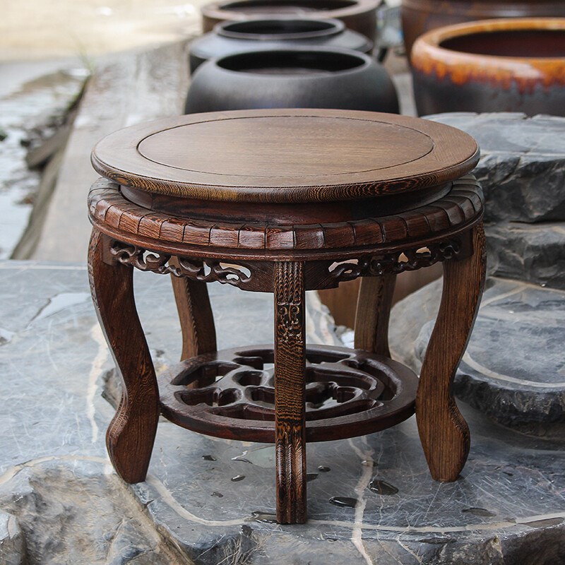 陶瓷鱼缸底座鸡翅木底座桌面特大号陶瓷落地瓷缸实木底座花盆花架