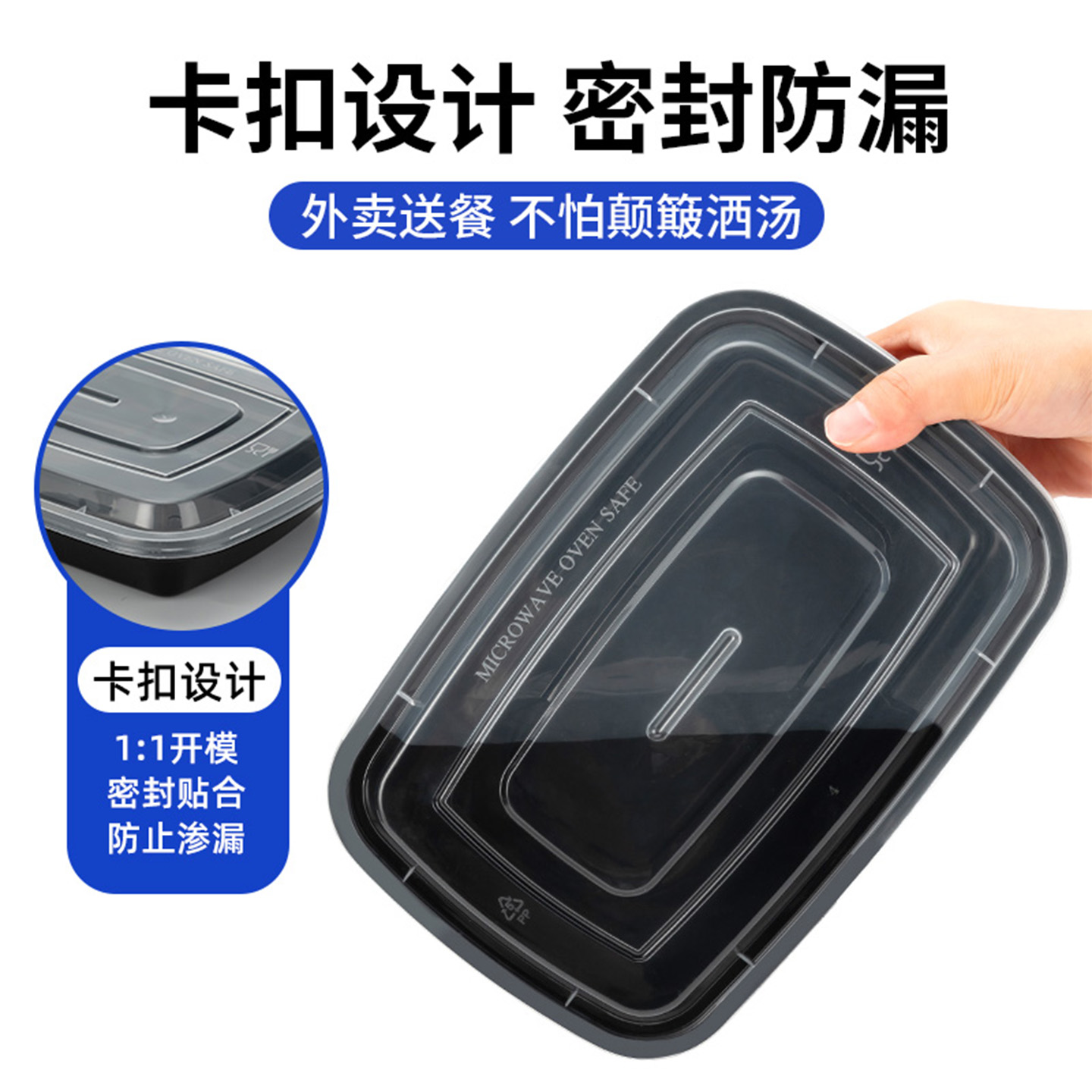 750/1000ml一次性餐盒美式长方形外卖快餐打包盒黑色凸盖加厚商用