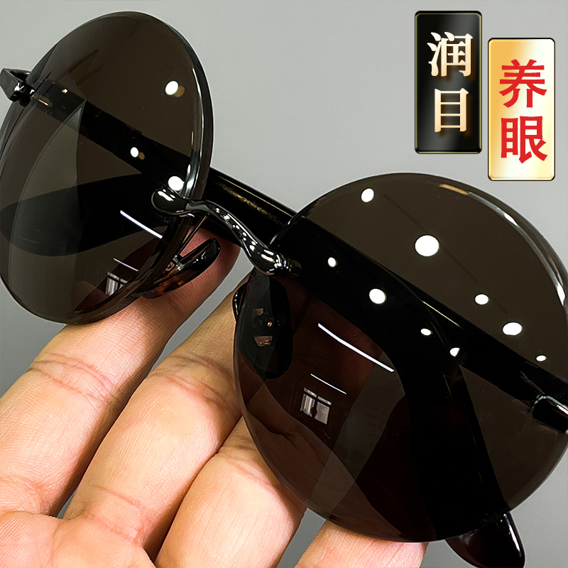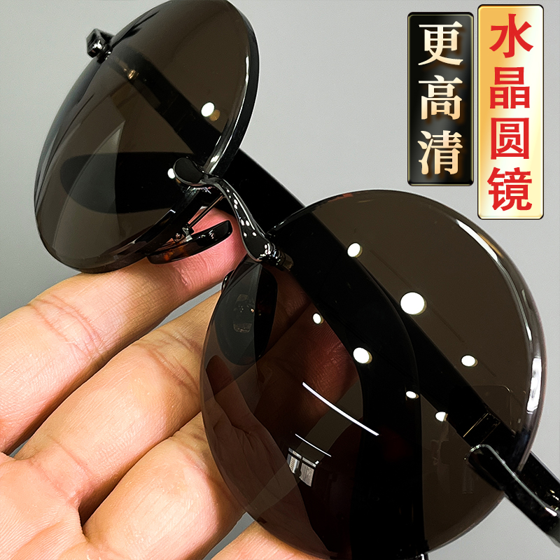 高档水晶眼镜圆款石头镜东海水晶老油料水晶石镜太阳镜润目养眼