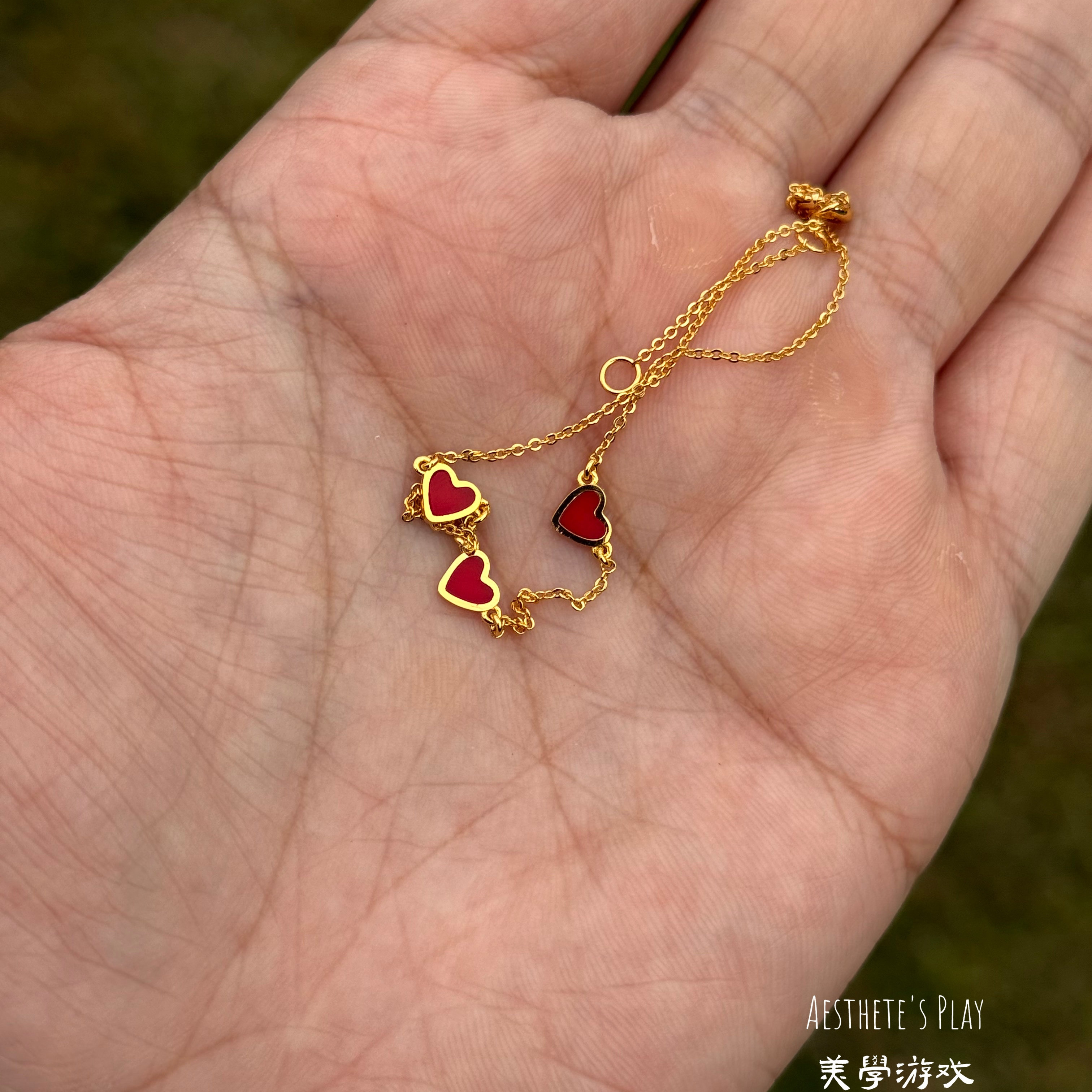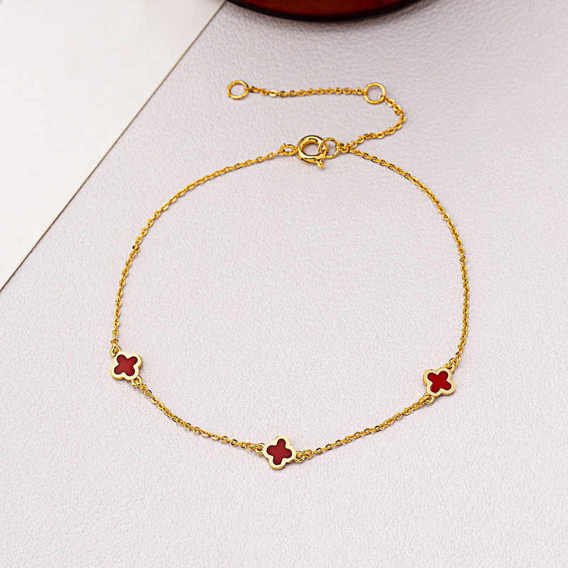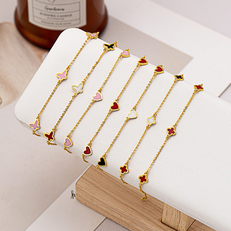 铜镀18K真金迷你四叶草手链女气质爱心蝴蝶手饰新年红色2026新款