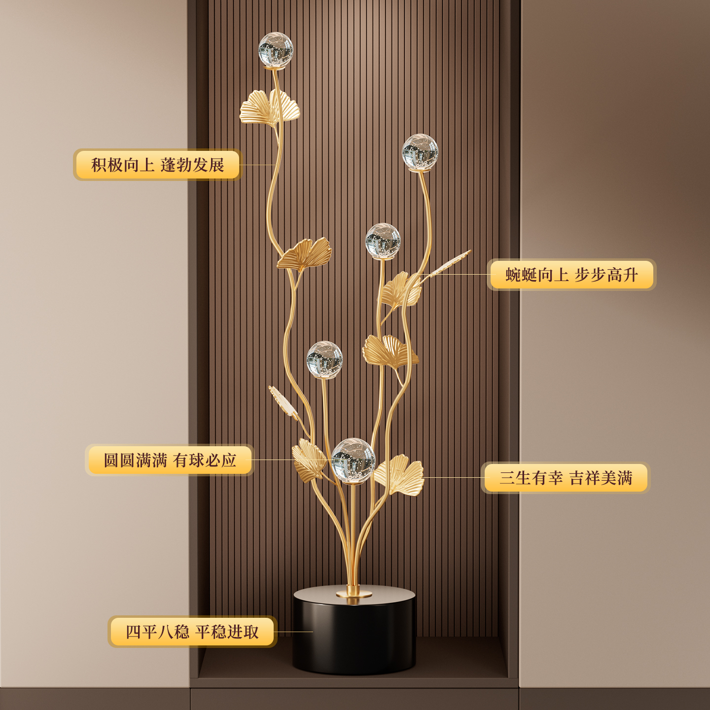 银杏叶入户玄关摆件轻奢高档客厅装饰电视柜壁龛新房乔迁新居礼物