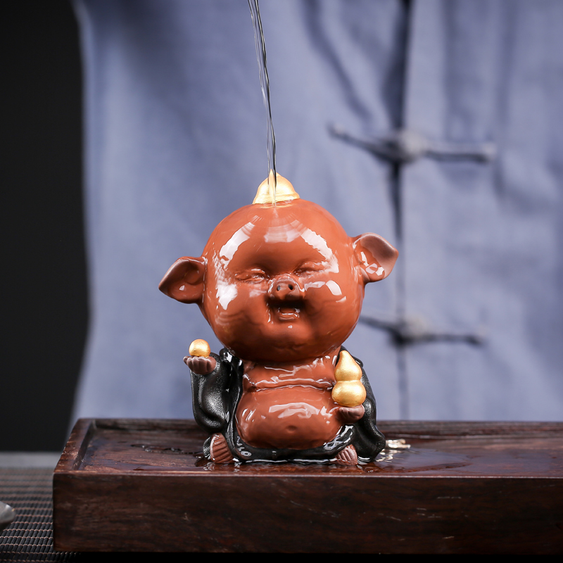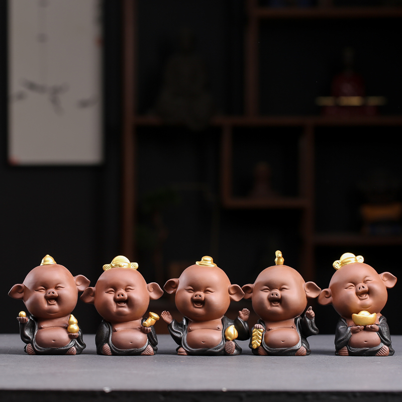 可爱吉祥五福猪紫砂摆件家居客厅茶桌可养精品茶玩茶宠摆设装饰品