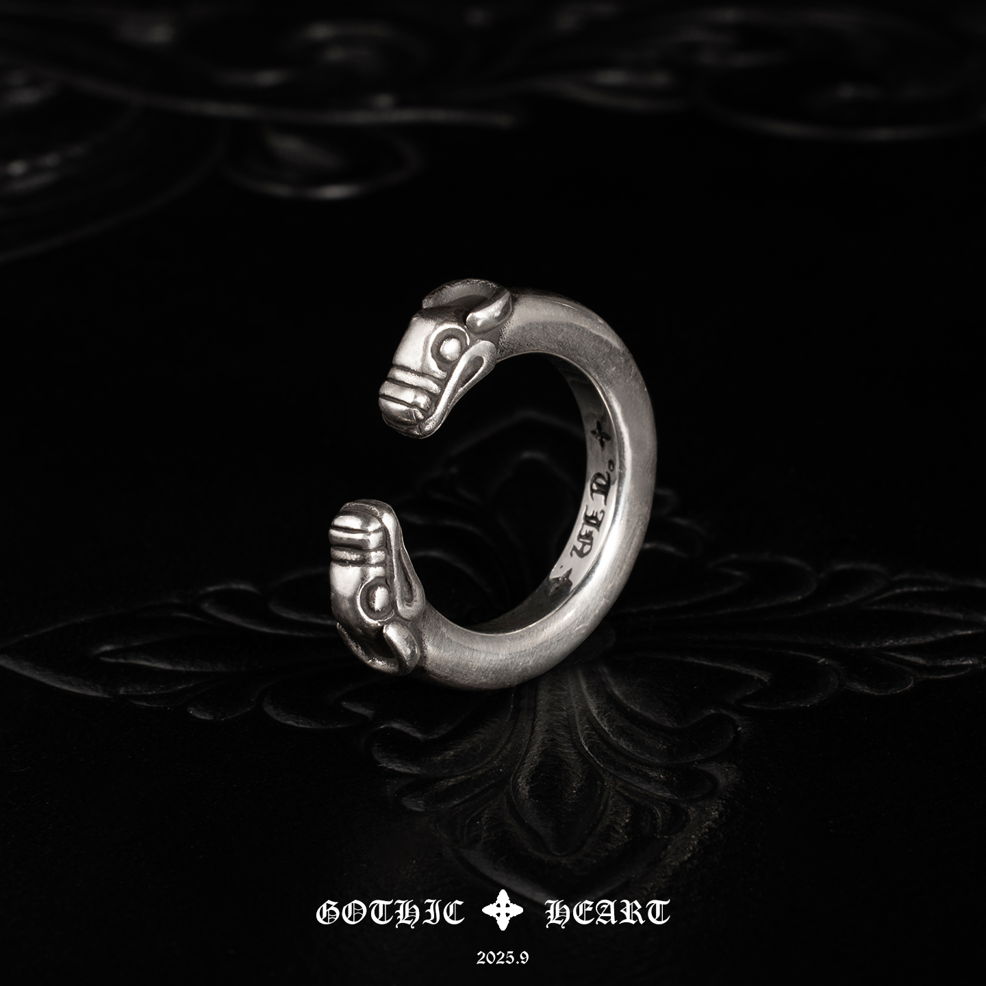 GOTHIC HEART哥特之心复古双貔貅开口戒指潮流男女做旧S925银指环