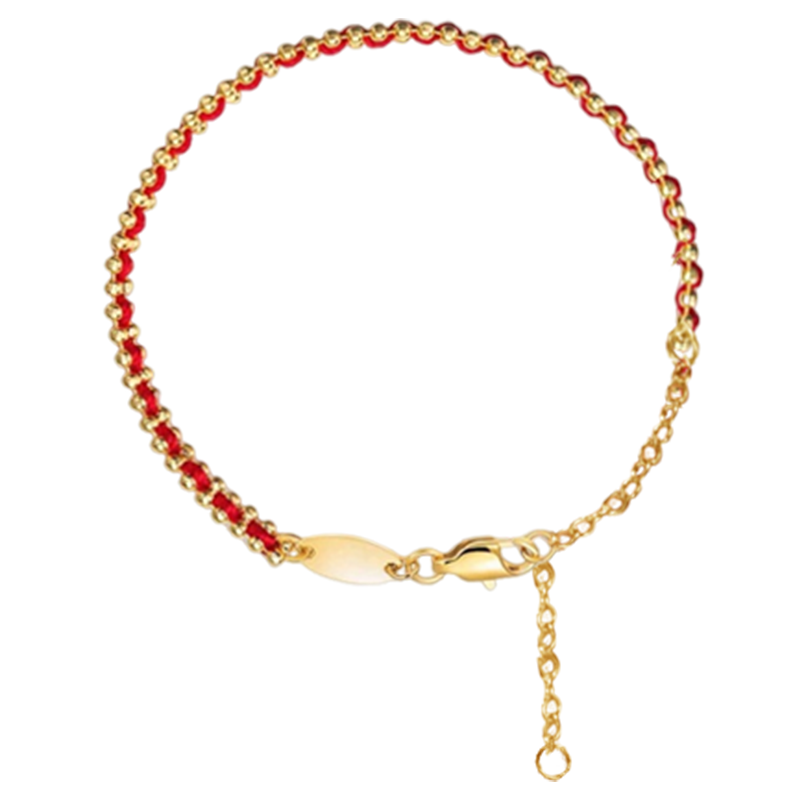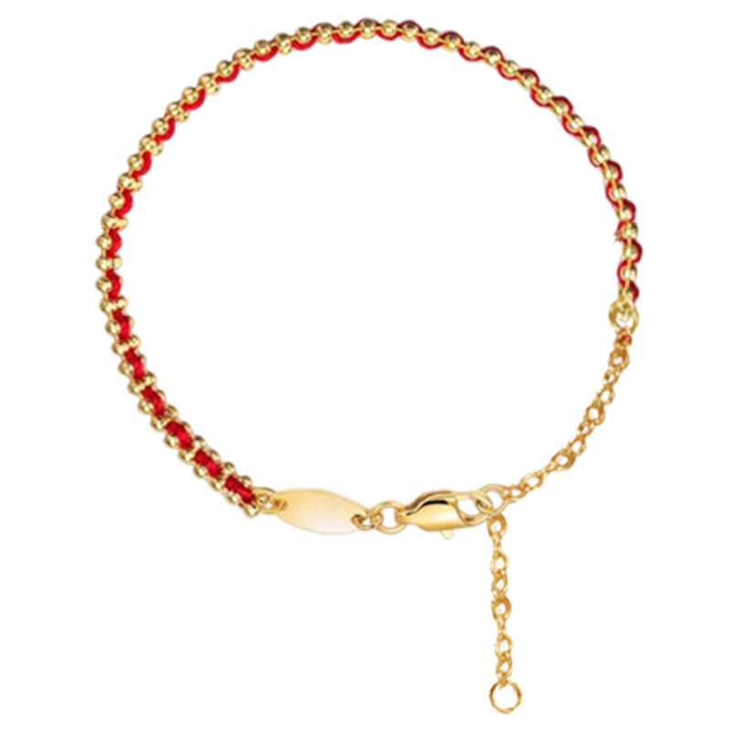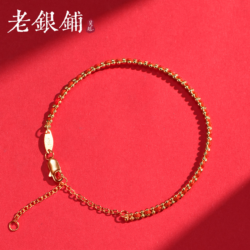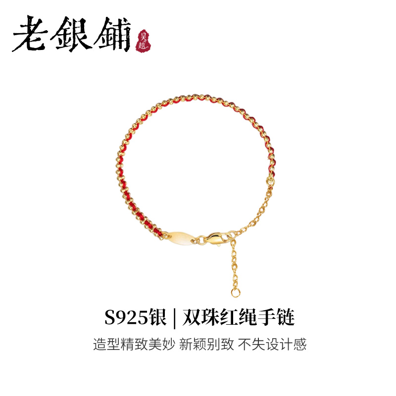 吴越老银铺S925银双珠红绳手链简约百搭纯银手链新年红色ins手链