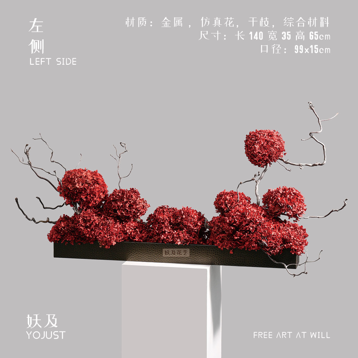 妖及 红色系绣球干花摆件 新中式新年酒店大堂接待处艺术花艺摆件