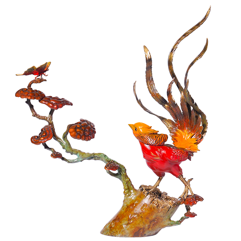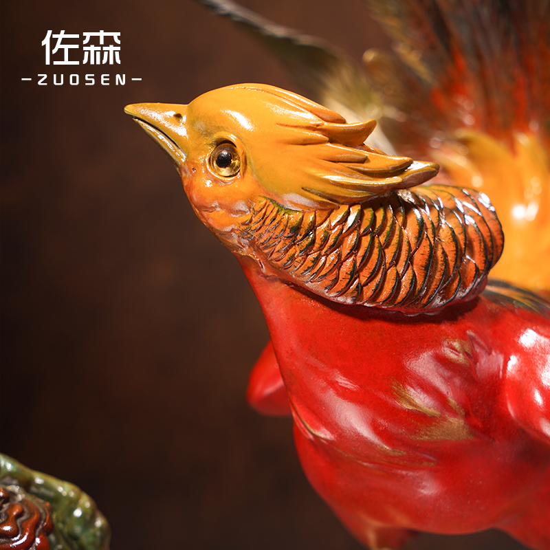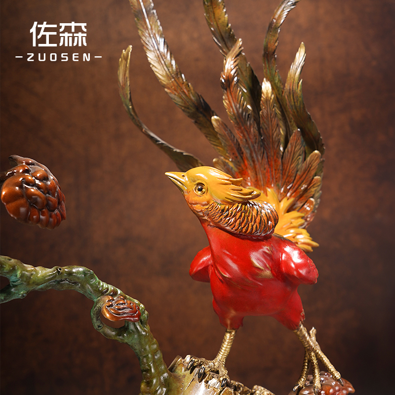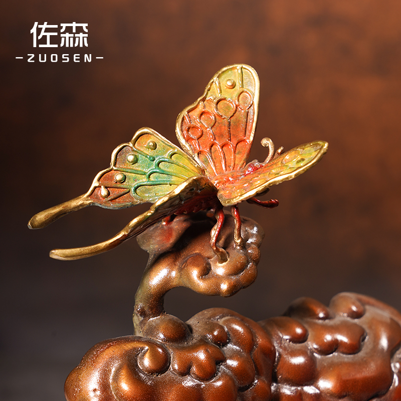 佐森铜摆件蝴蝶锦鸡图新中式家居客厅电视边柜装饰品乔迁新居礼品