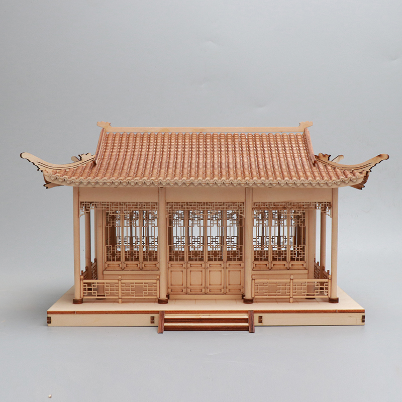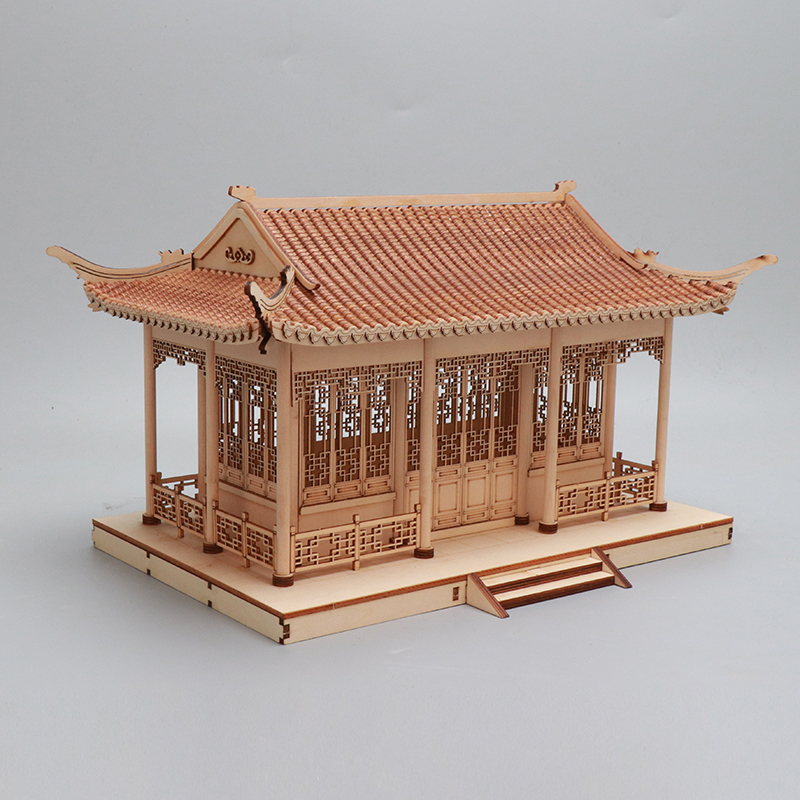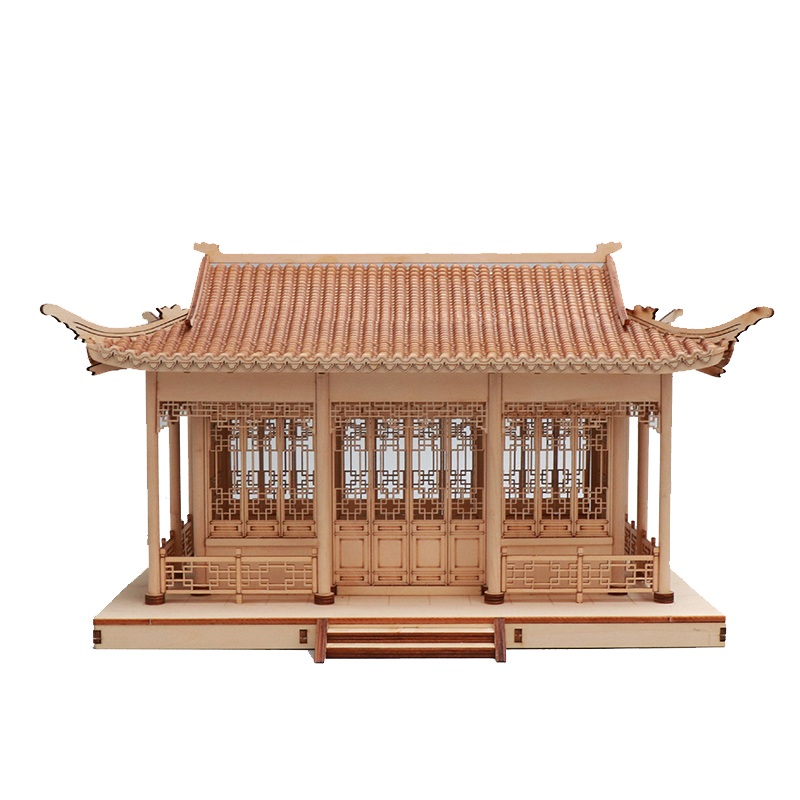 现代新中式创意家居客厅玄关禅意古建筑木制装软装饰品雕塑台摆件