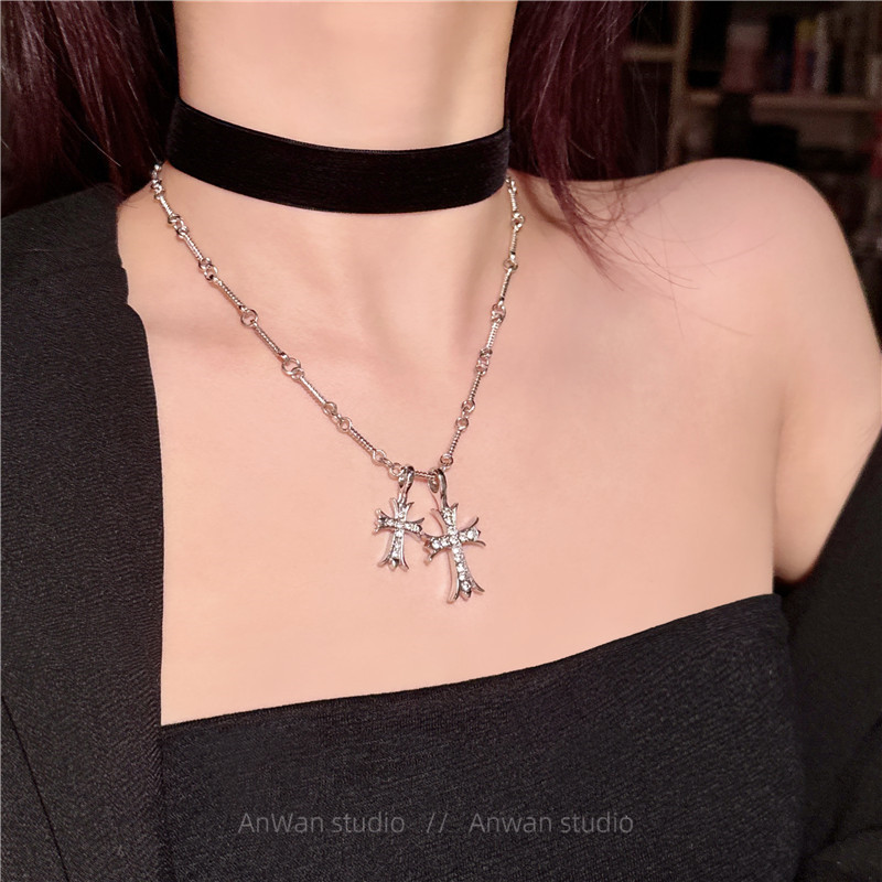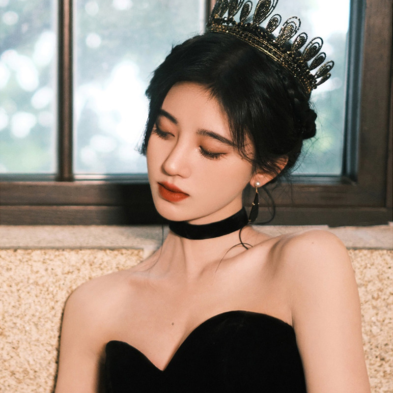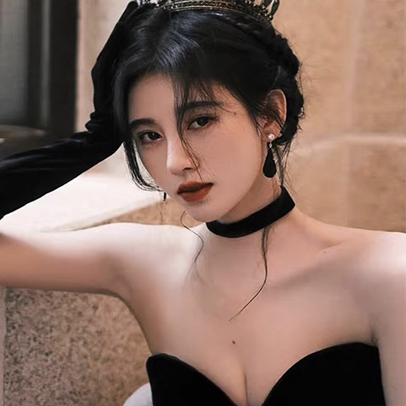 鞠婧祎同款锁骨链黑色丝绒项圈choker颈链脖子配饰小众设计高级感
