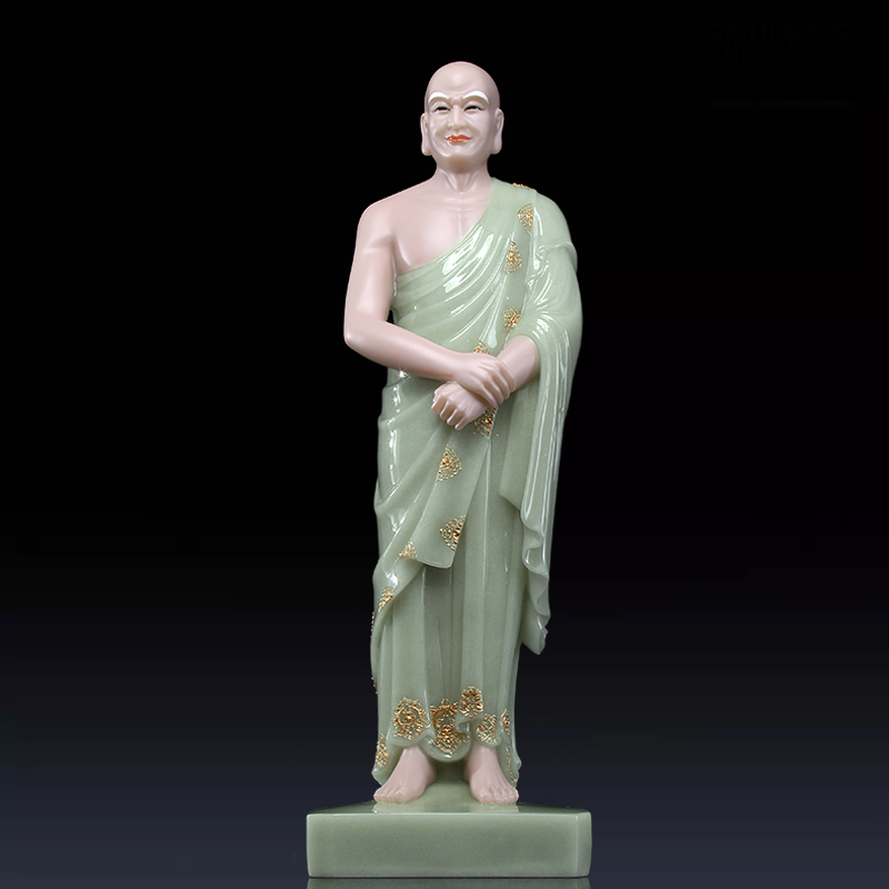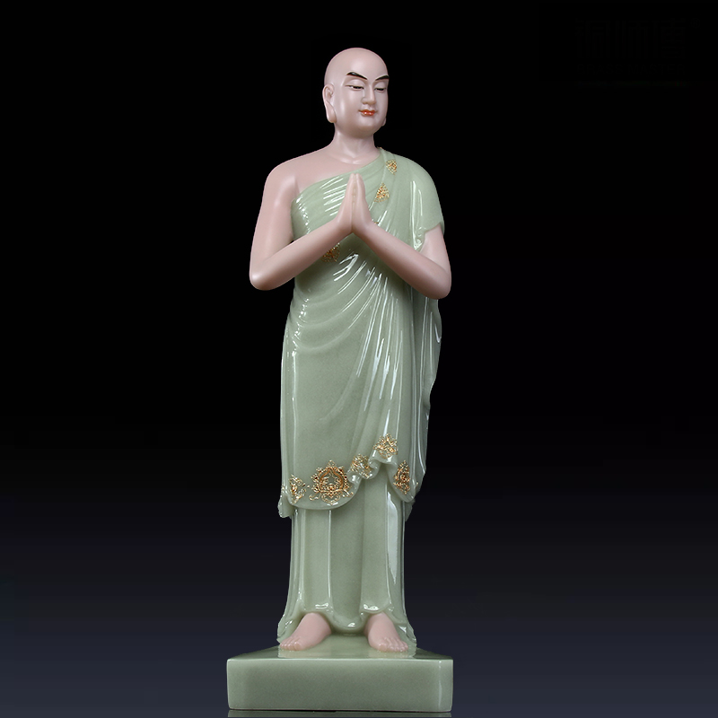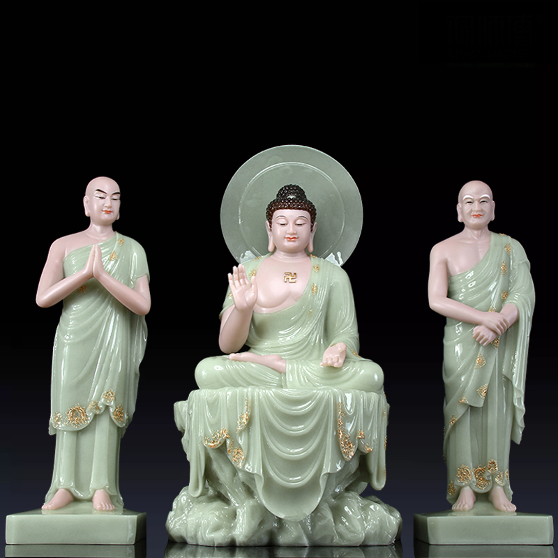 汉白玉释迦牟尼佛像摆件如来佛祖说法像石雕翠玉镶金阿难迦叶尊者