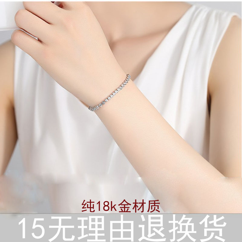 美国进口莫桑石18K白金手链女款AU750简约单排钻手链10分钻日韩