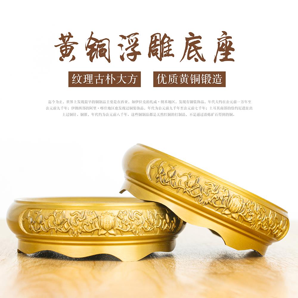 百福黄铜米缸底座鱼缸花盆托盘架香炉摆件莲花聚宝盆复古山水浮雕
