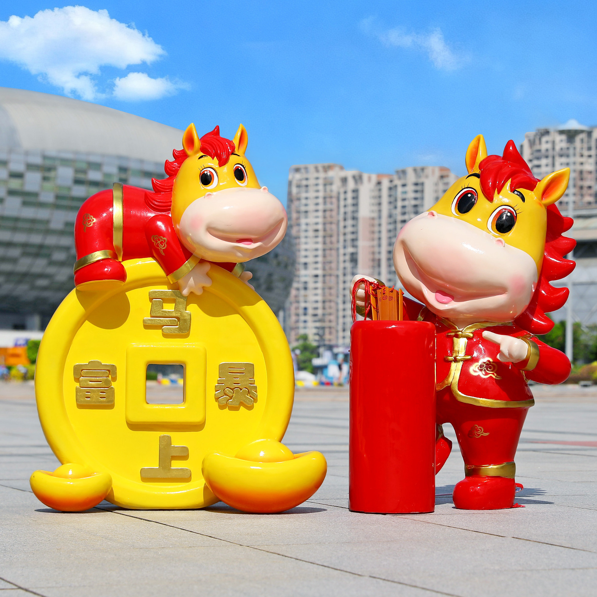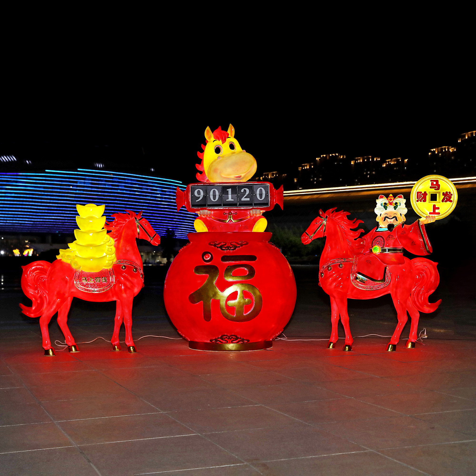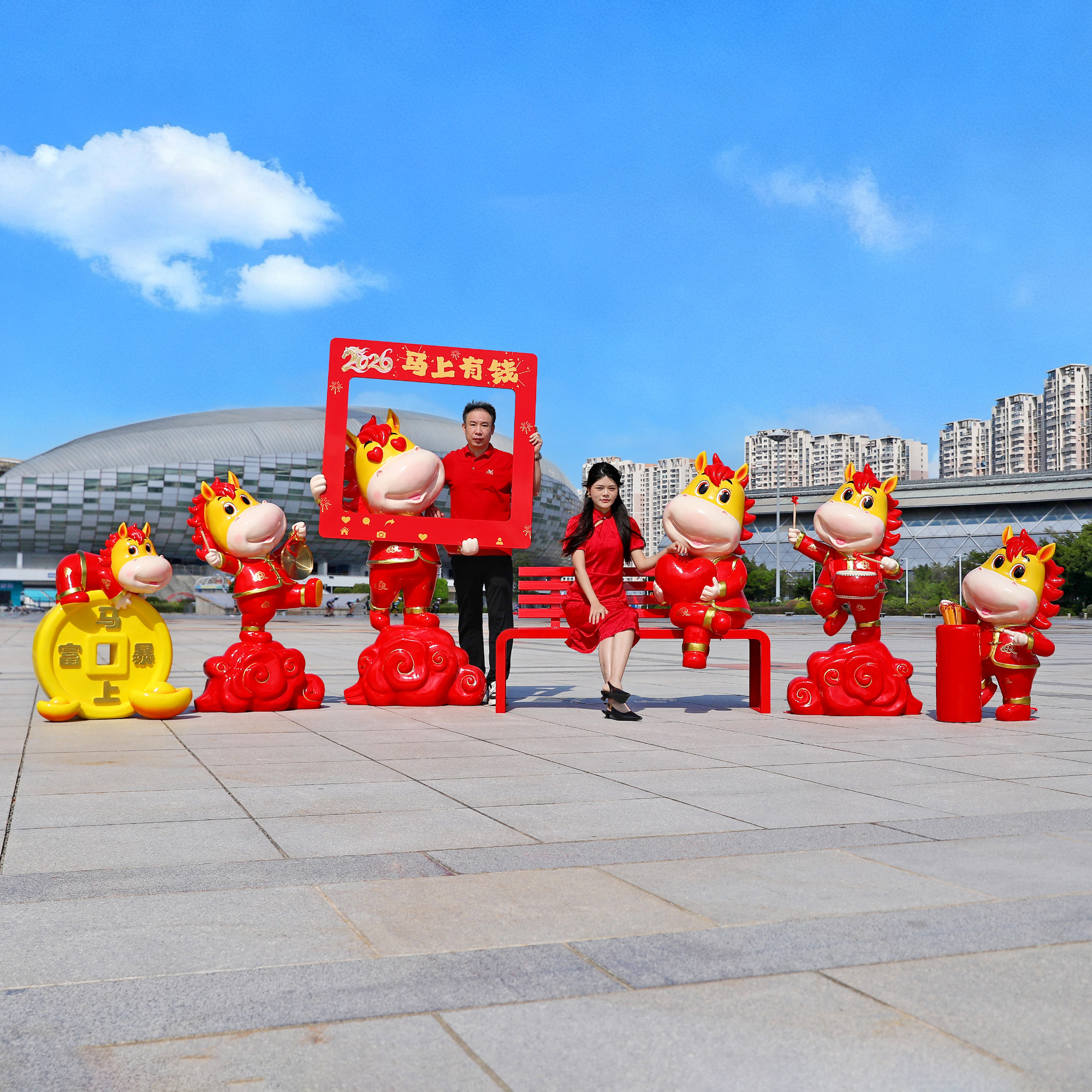 新年发光2026生肖马造型打卡装饰摆件发光新年春节商场美陈装饰品