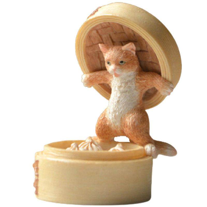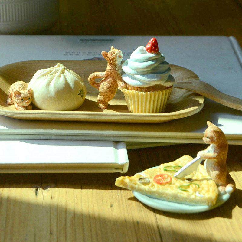 创意可爱小动物猫咪摆件仿真食物包子厨房模型餐厅家居装饰品送礼