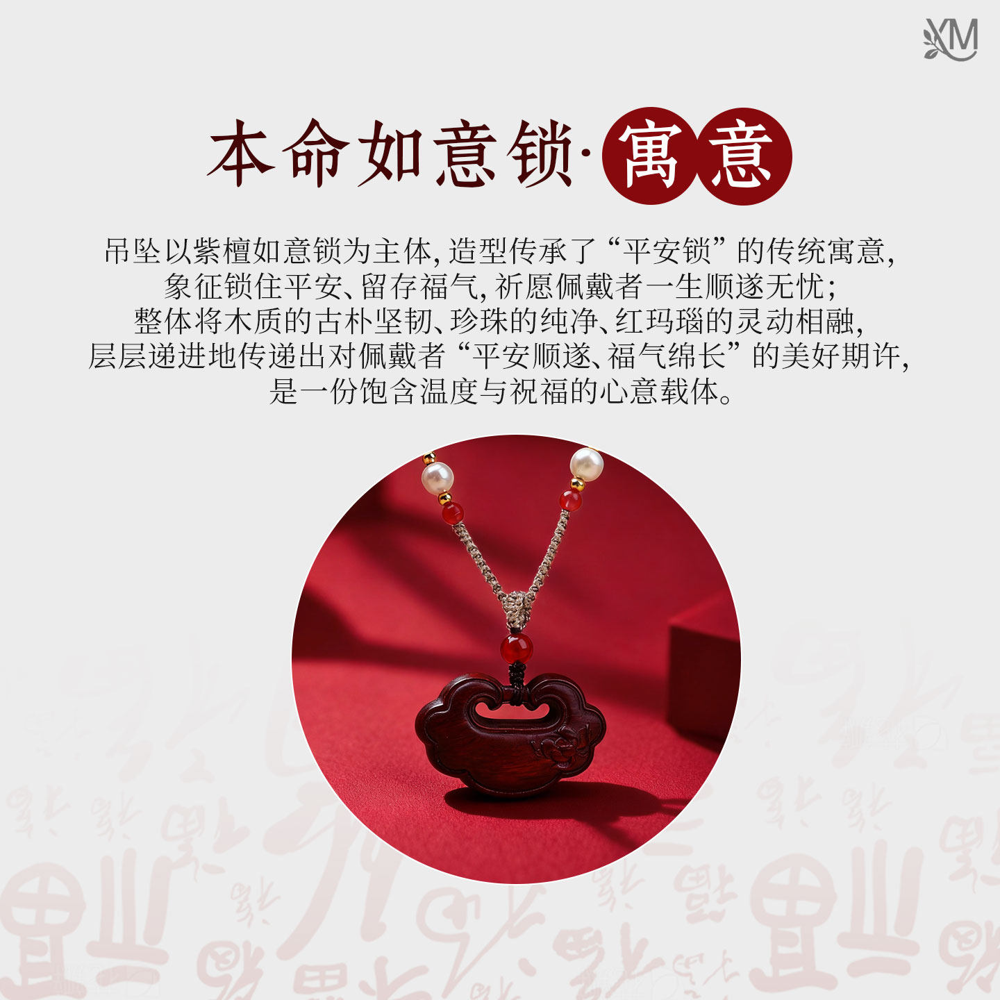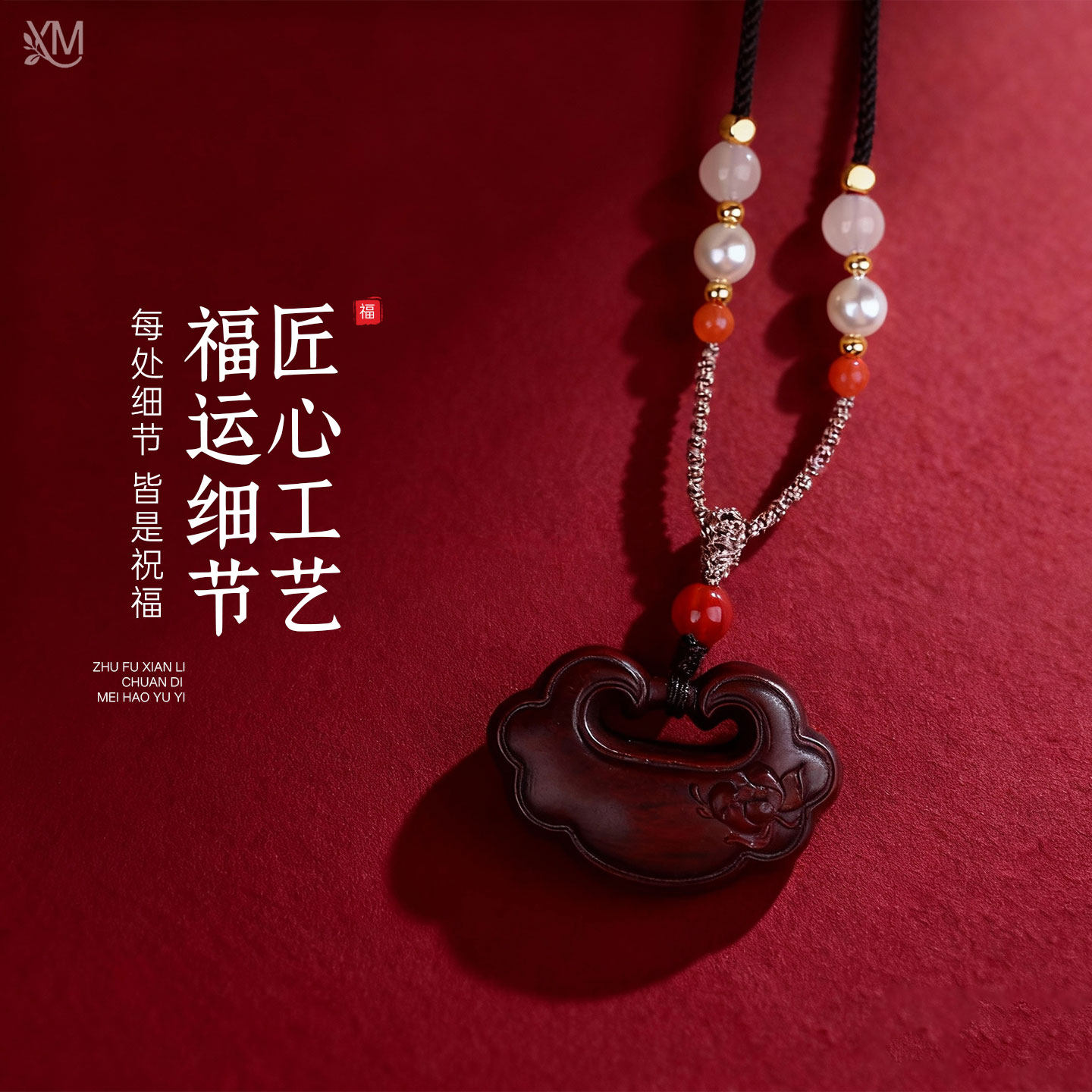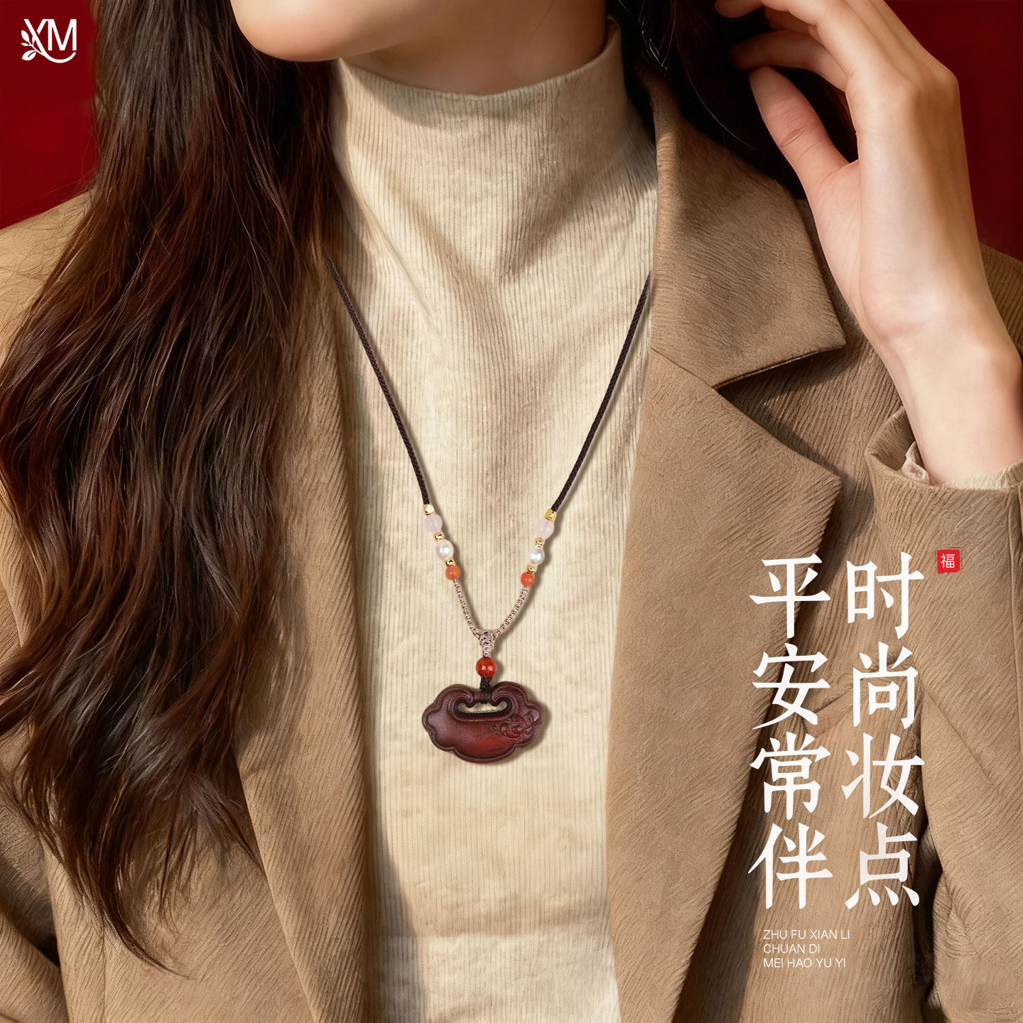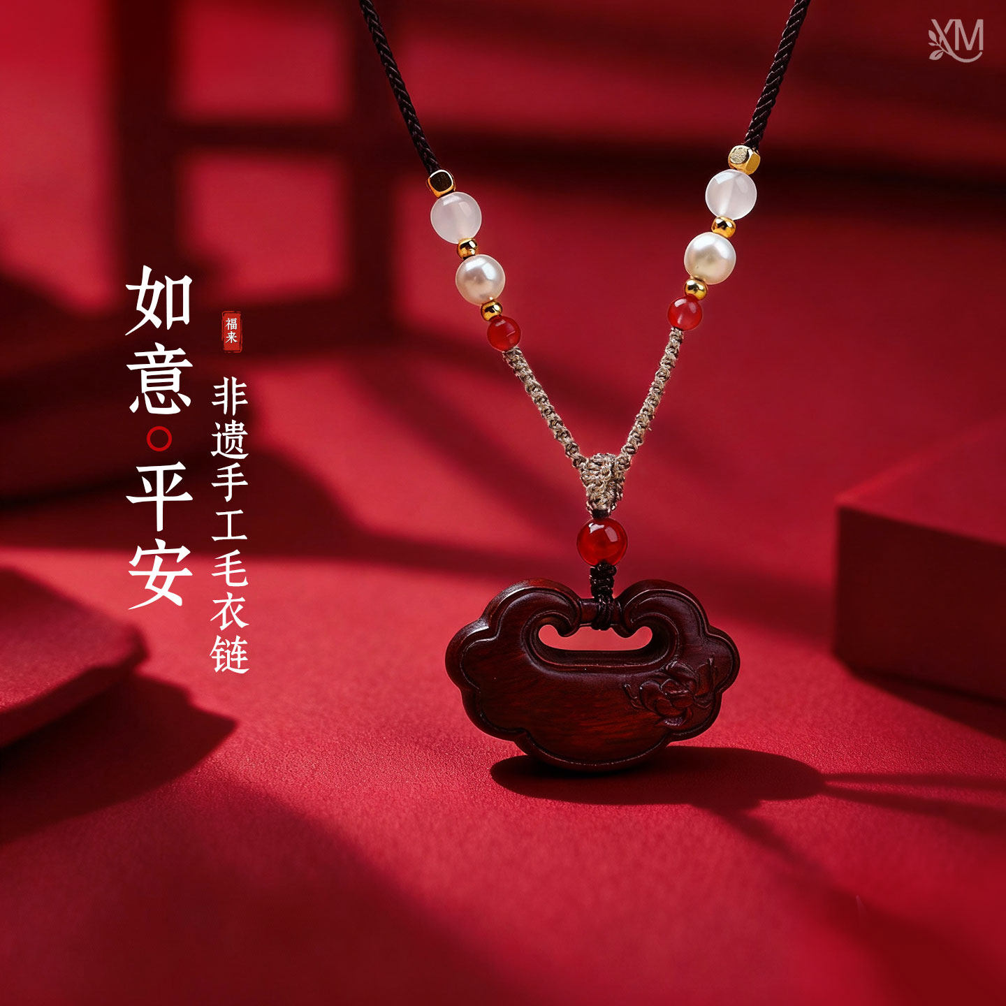 平安如意木质如意吊坠手工编织项链男女通用本命年挂件高级毛衣链