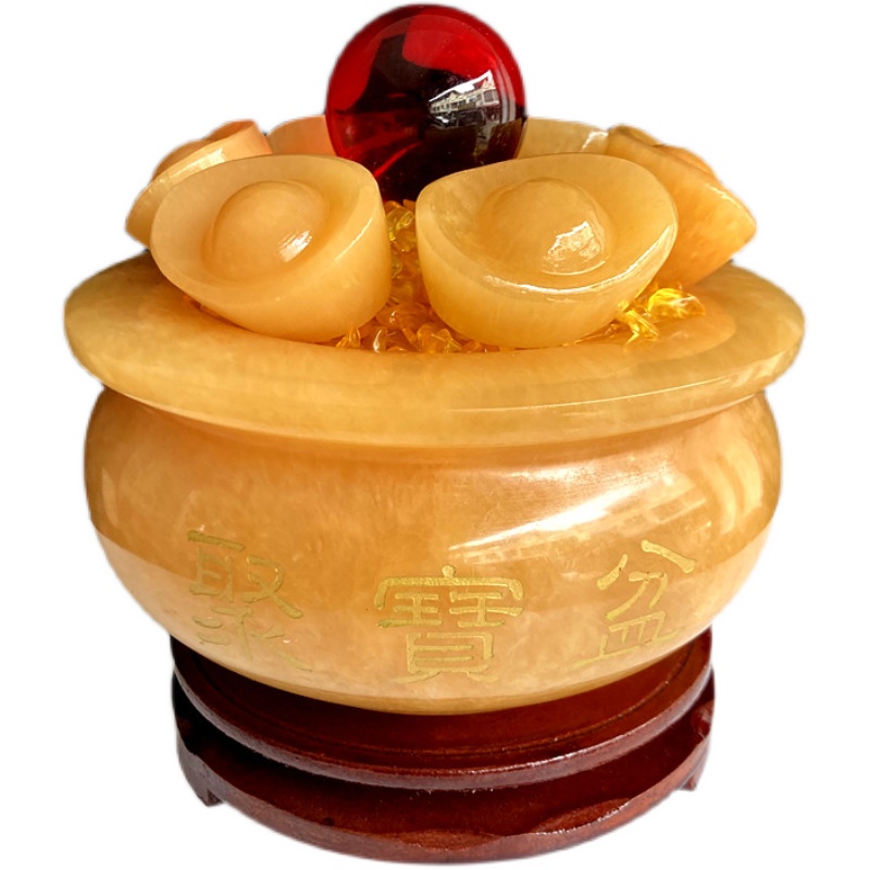 黄玉聚宝盆开业招k财摆件元宝水晶球现代客厅店铺桌面装饰天然玉