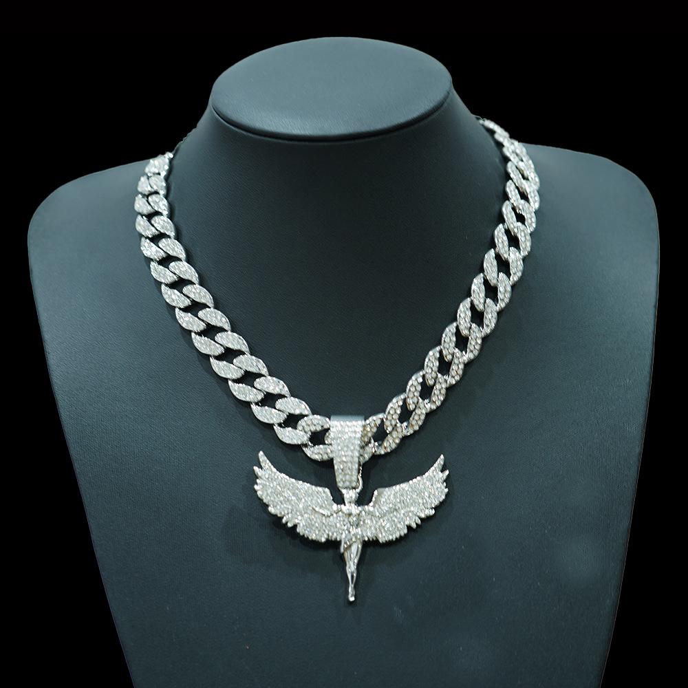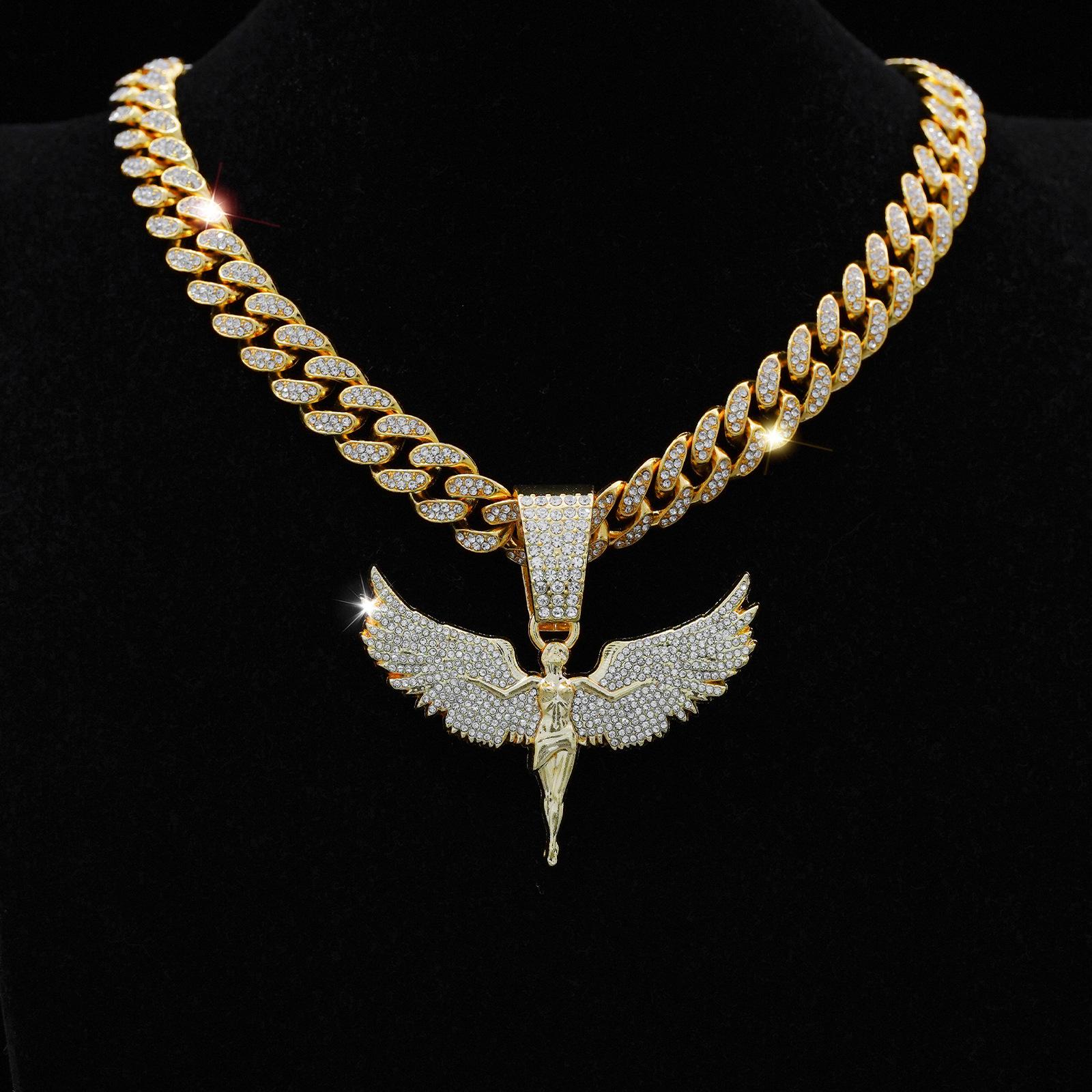 欧美风高级感天使翅膀吊坠个性满钻男女说唱街舞同款古巴镶钻项链